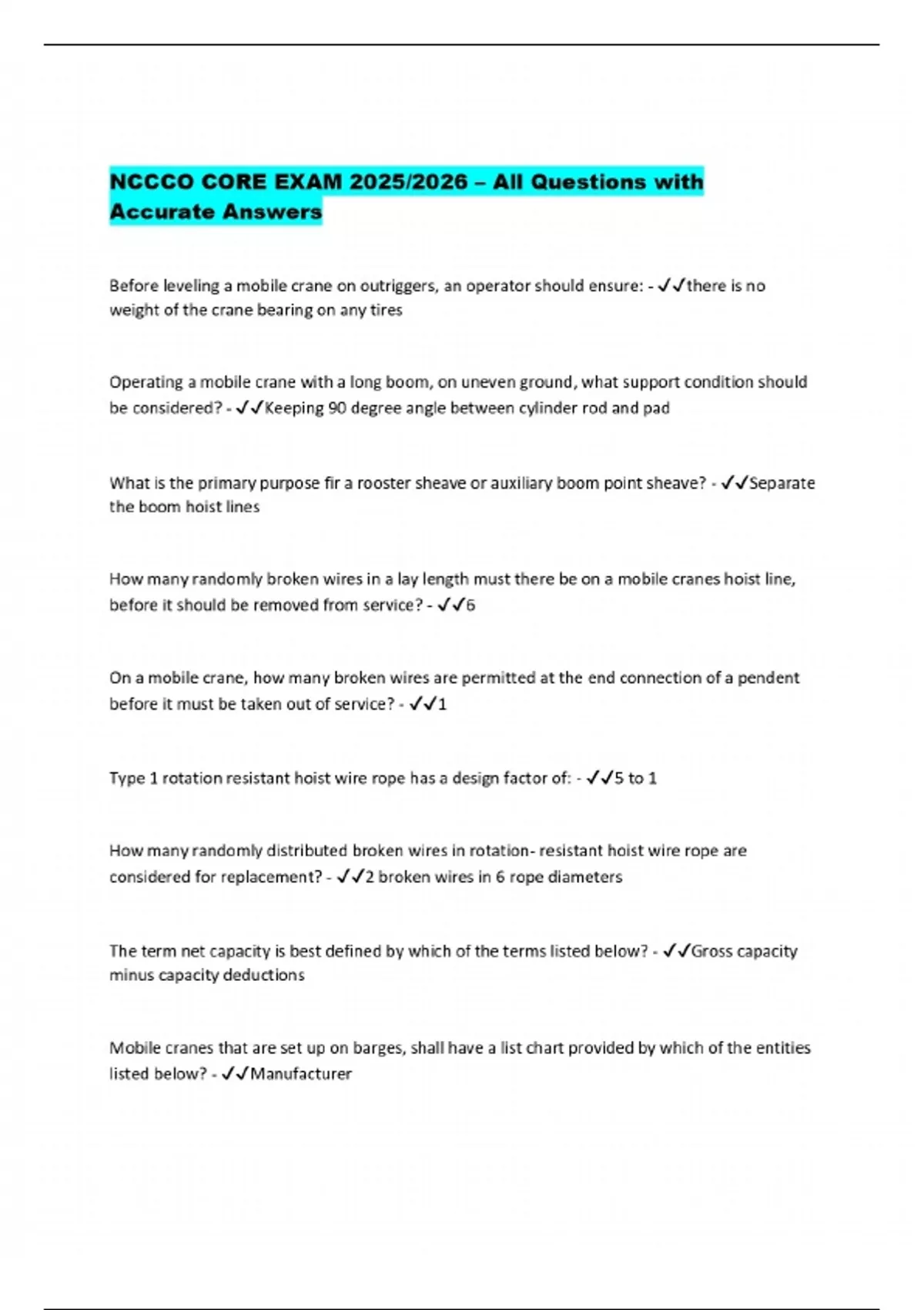 NCCCO CORE EXAM 2025/2026 – All Questions with Accurate Answers