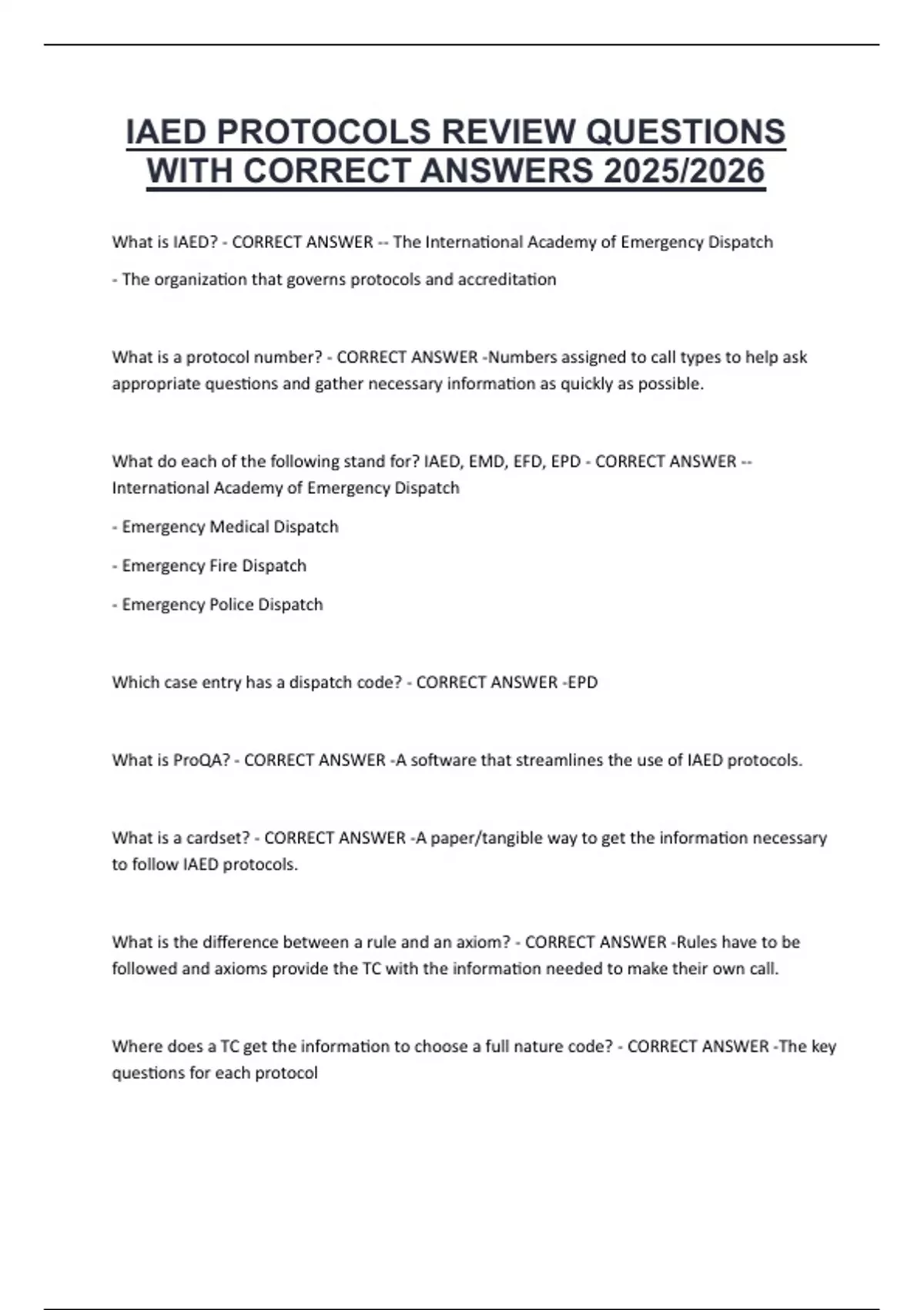 IAED PROTOCOLS REVIEW QUESTIONS WITH CORRECT ANSWERS 2025/2026