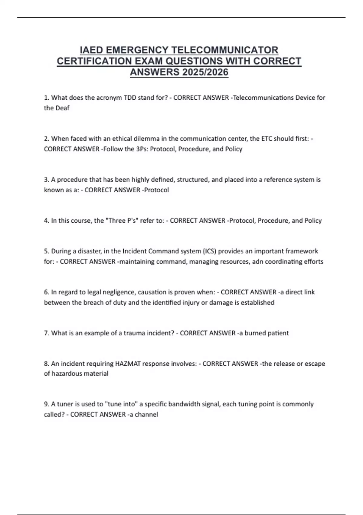 CERTIFICATION EXAM QUESTIONS WITH CORRECT
