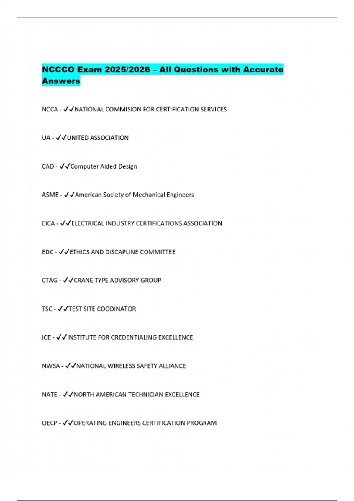 PACKAGE DEAL FOR NCCCO Exams 2025/2026 – Verified Questions and Correct Answers