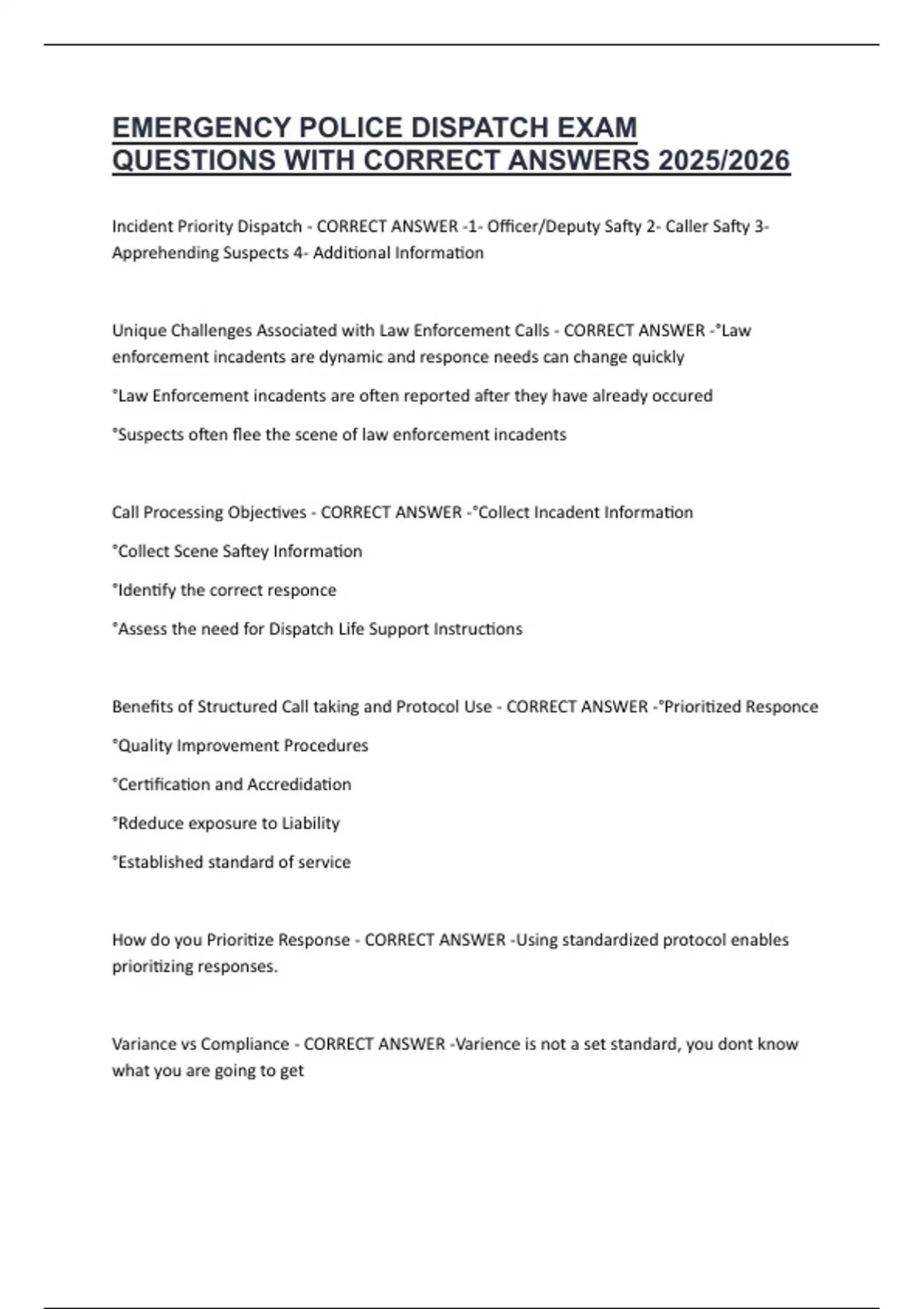 Incident Priority Dispatch - CORRECT ANSWER -1- Officer/Deputy Safty 2- Caller Safty 3-