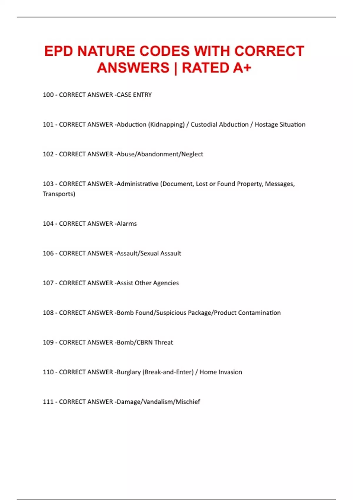 110 - CORRECT ANSWER -Burglary (Break-and-Enter) / Home Invasion