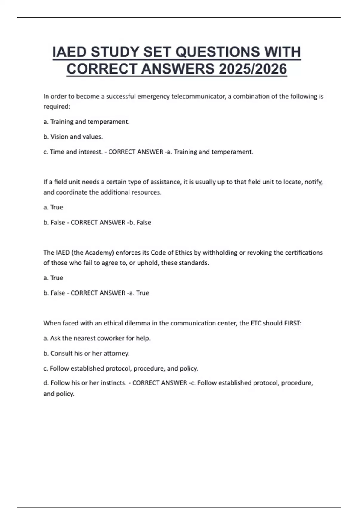 IAED STUDY SET QUESTIONS WITH CORRECT ANSWERS 2025/2026