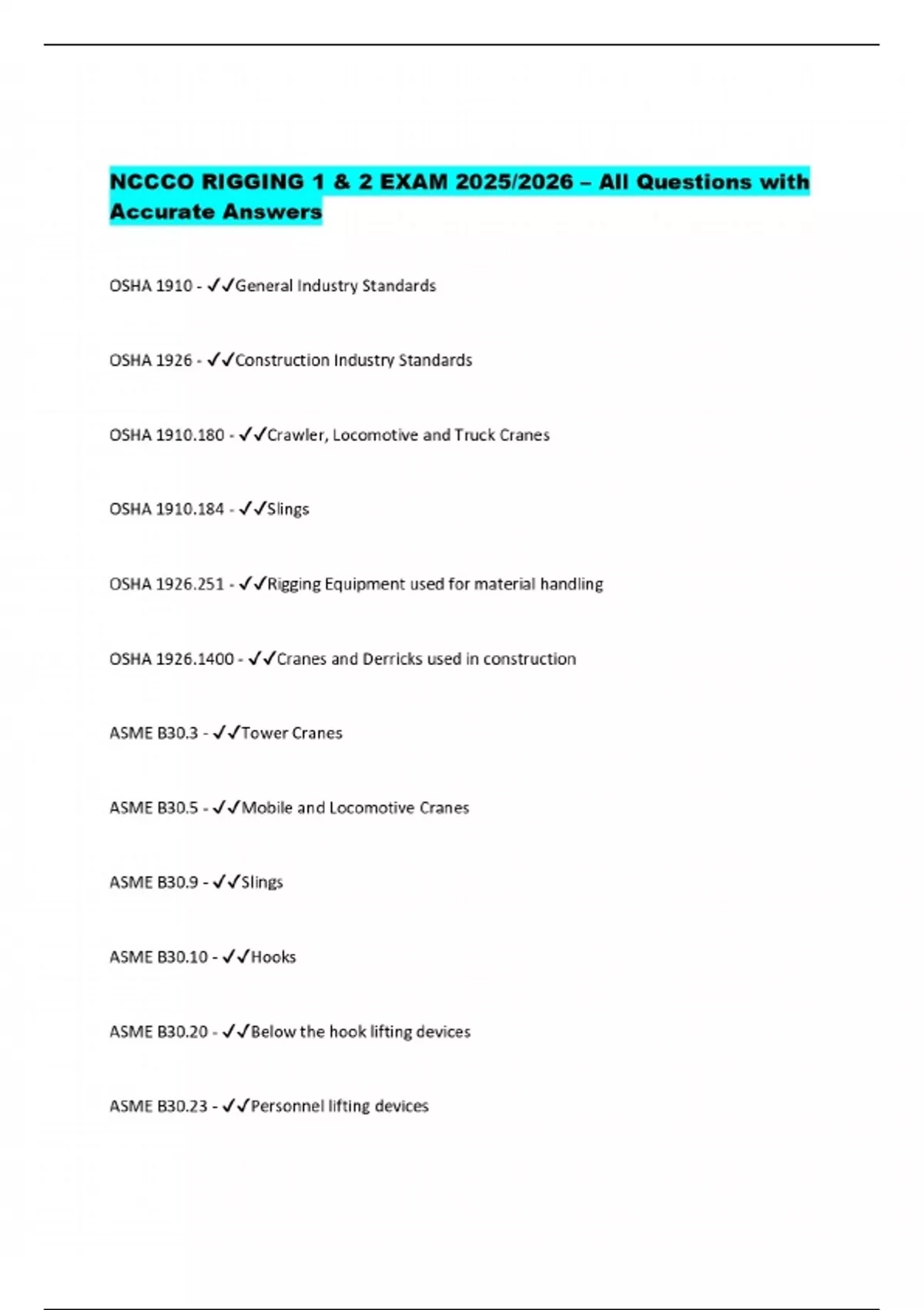 NCCCO RIGGING 1 & 2 EXAM 2025/2026 – All Questions with Accurate Answers
