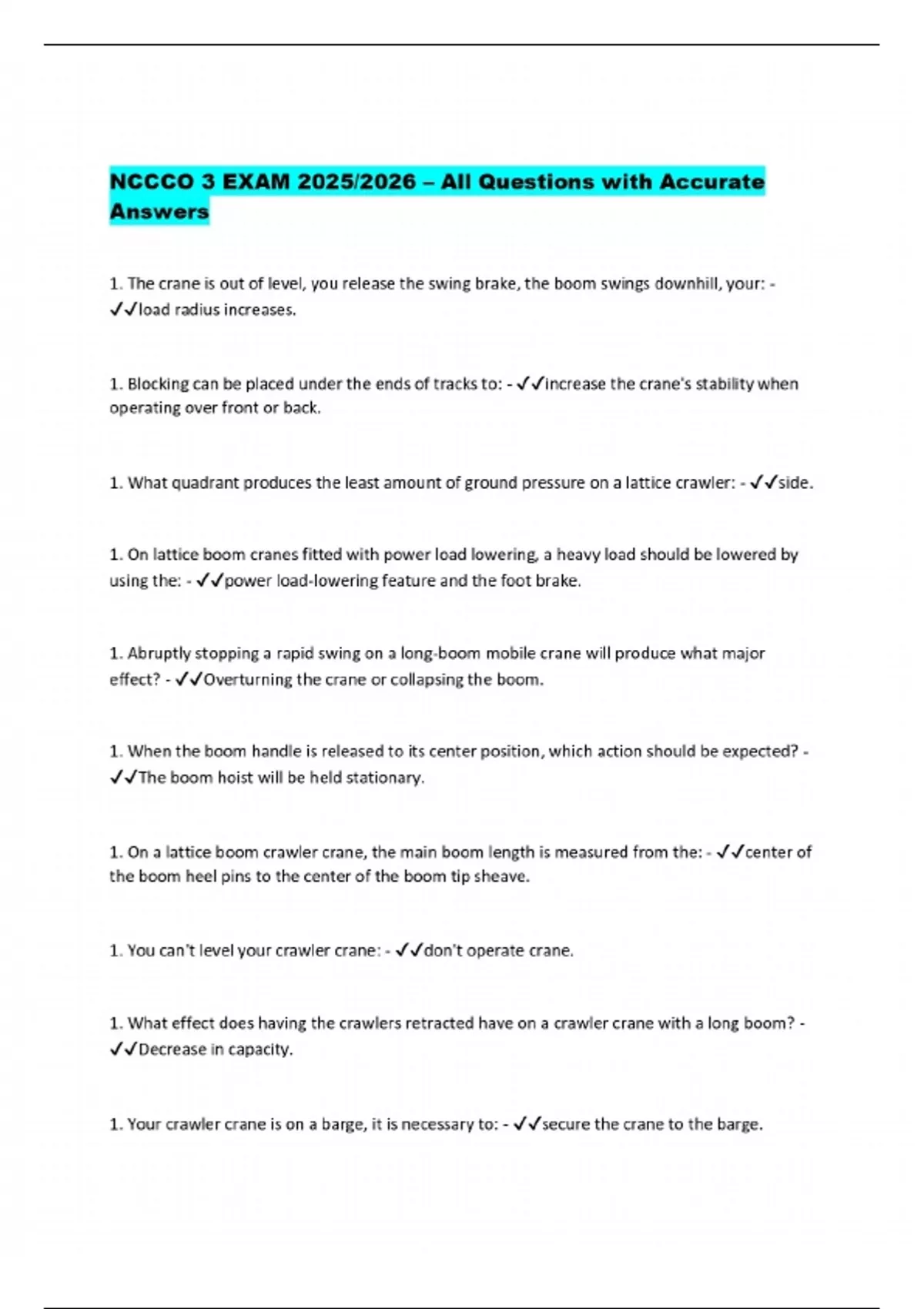 NCCCO 3 EXAM 2025/2026 – All Questions with Accurate Answers
