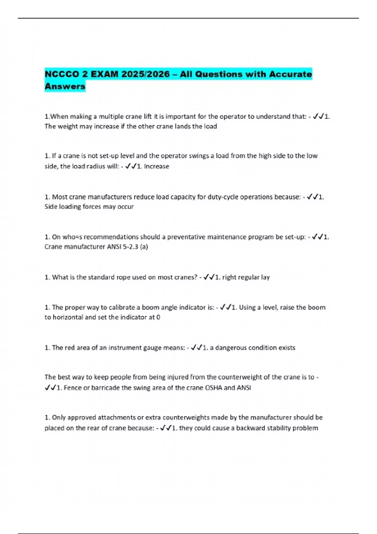 NCCCO 2 EXAM 2025/2026 – All Questions with Accurate Answers