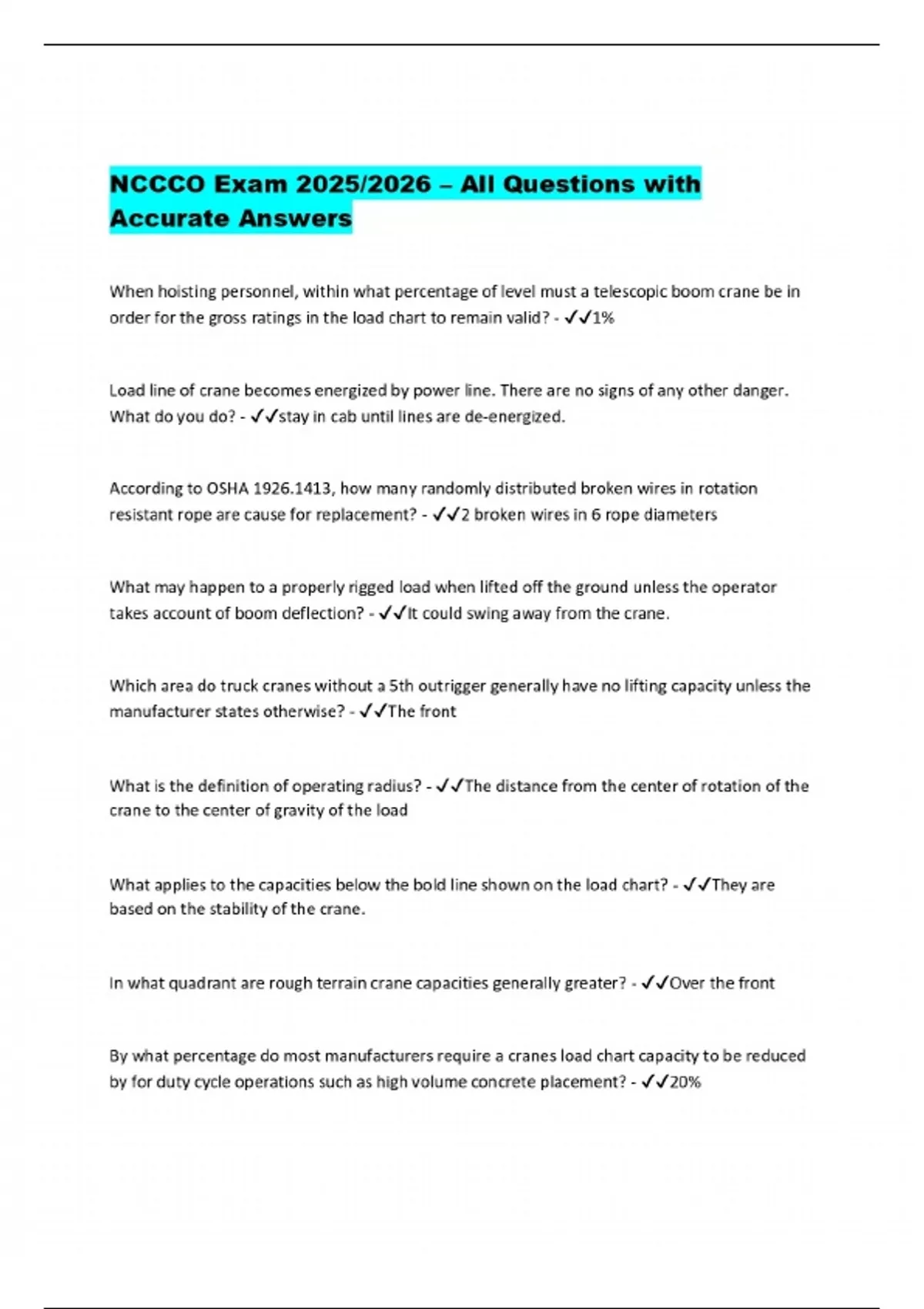 NCCCO Exam 2025/2026 – All Questions with Accurate Answers