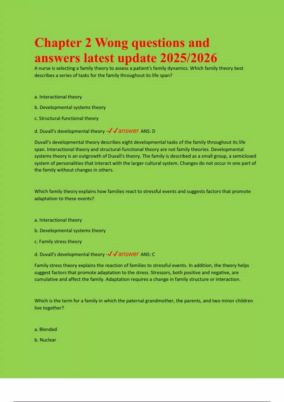 d. Duvall's developmental theory -✔✔answer ANS: C