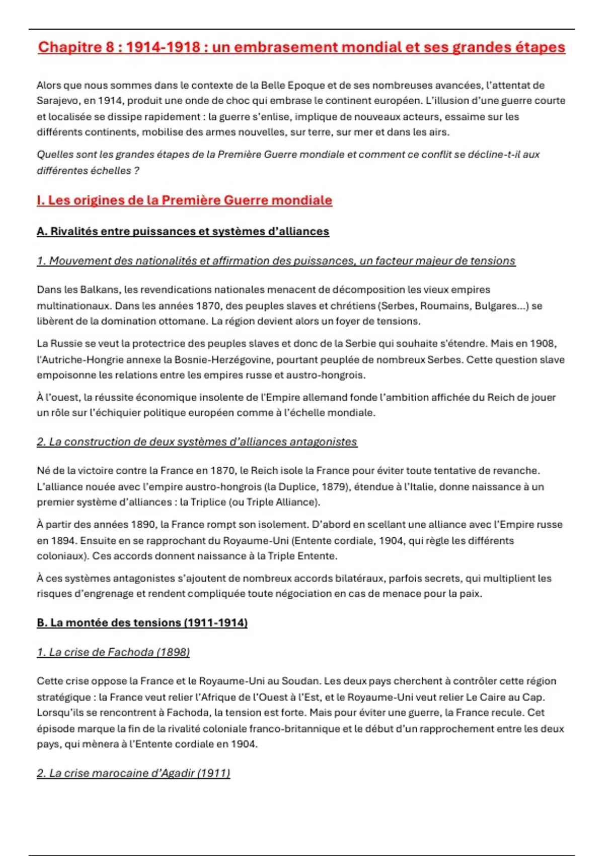 I. Les origines de la Première Guerre mondiale