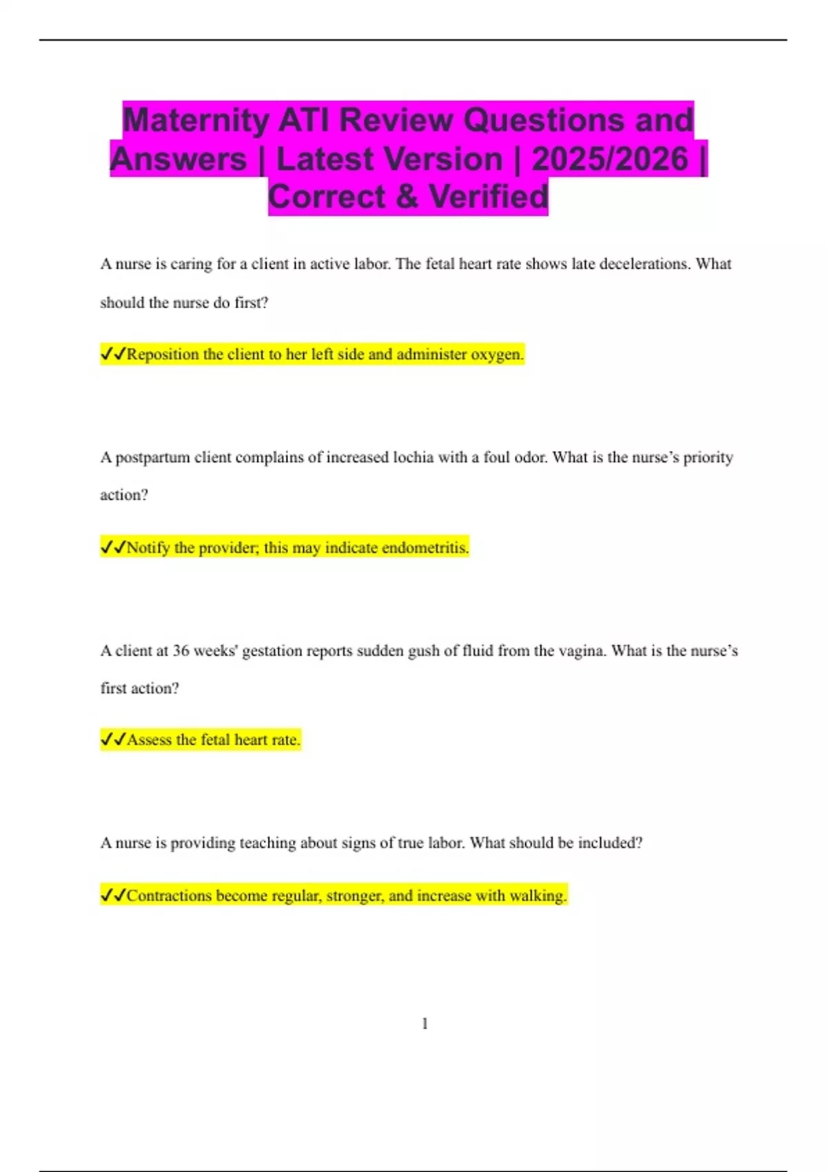 ✔✔Assess the fetal heart rate.