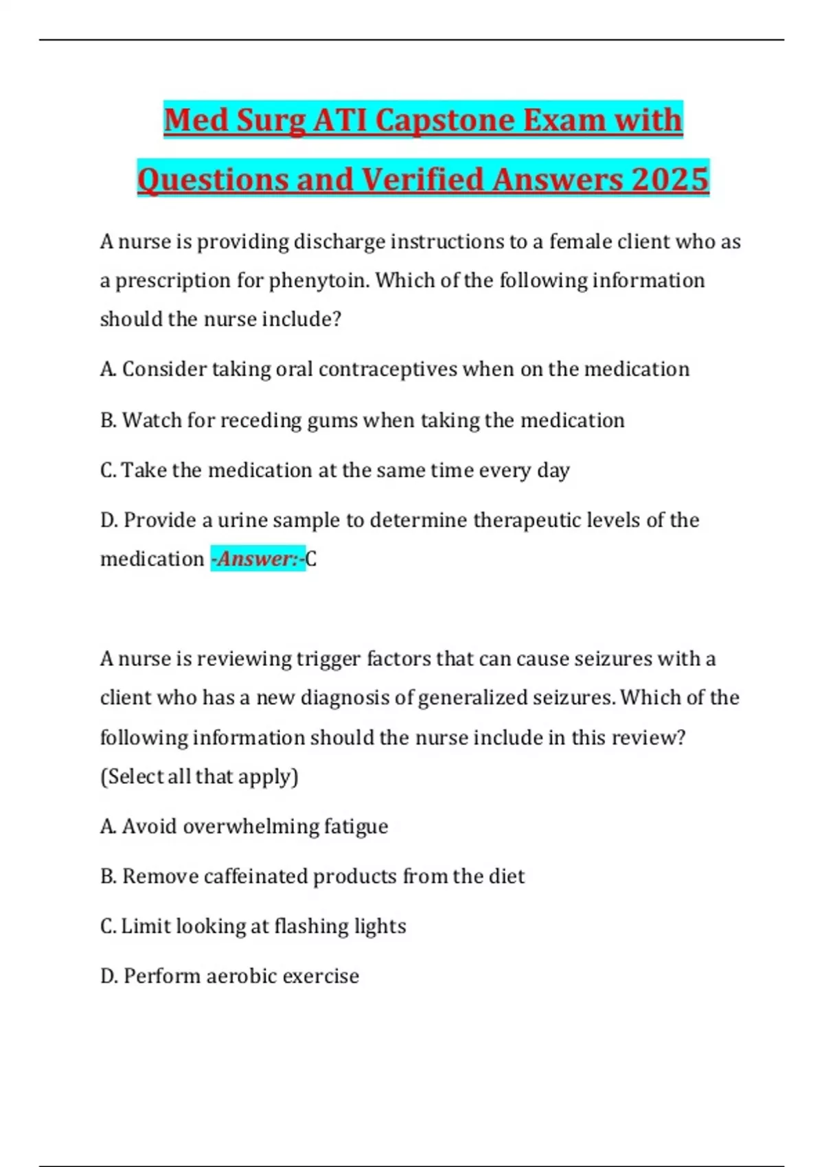 Questions and Verified Answers 2025