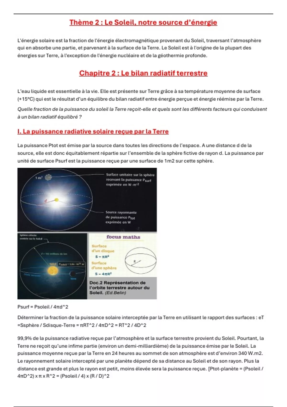 Terre ne reçoit qu’une infime partie (environ un demi-milliardième) de la puissance émise par le Soleil. La