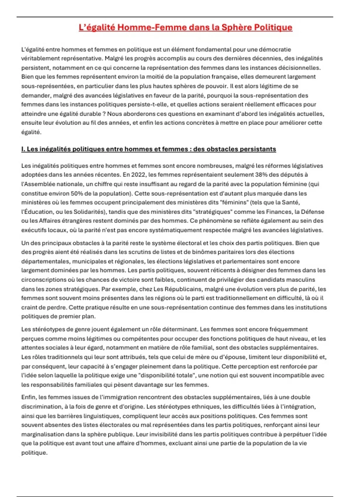 I. Les inégalités politiques entre hommes et femmes : des obstacles persistants