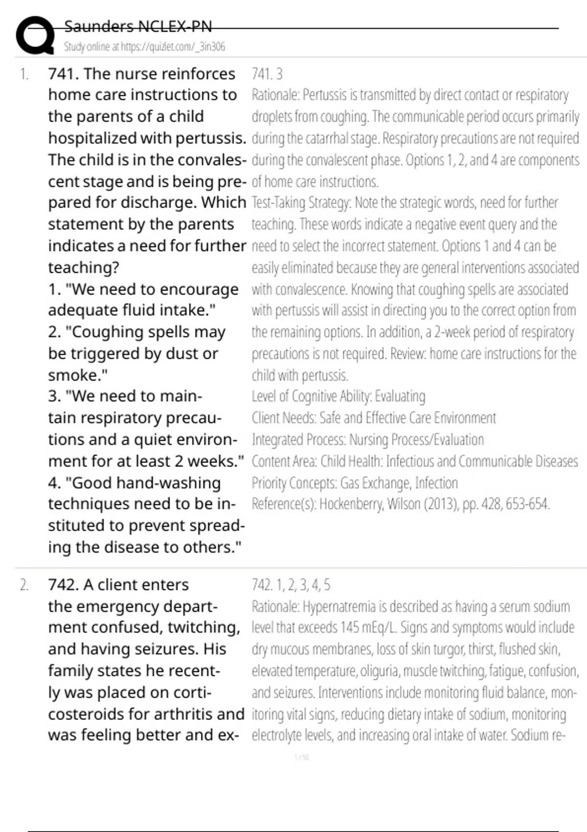 adequate fluid intake." with pertussis will assist in directing you to the correct option from