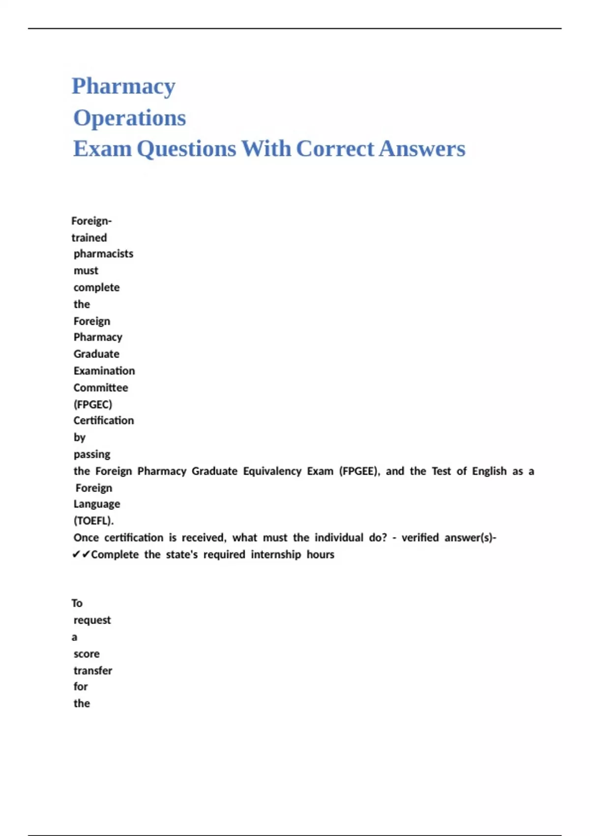 Pharmacy Operations Exam Questions With Correct Answers