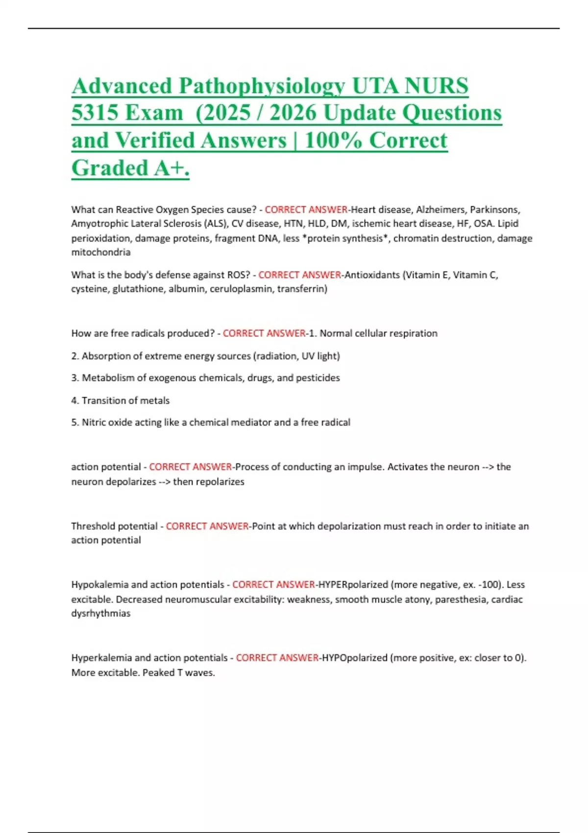 and Verified Answers | 100% Correct