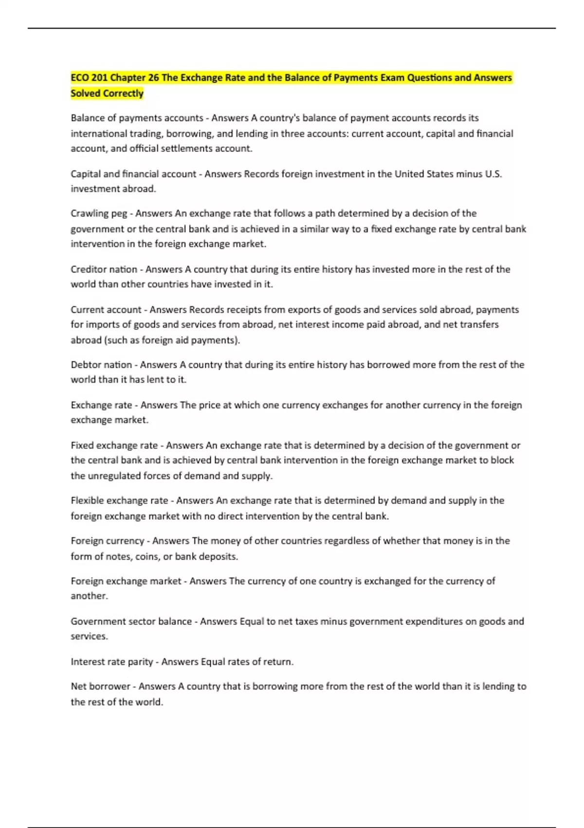 Interest rate parity - Answers Equal rates of return.