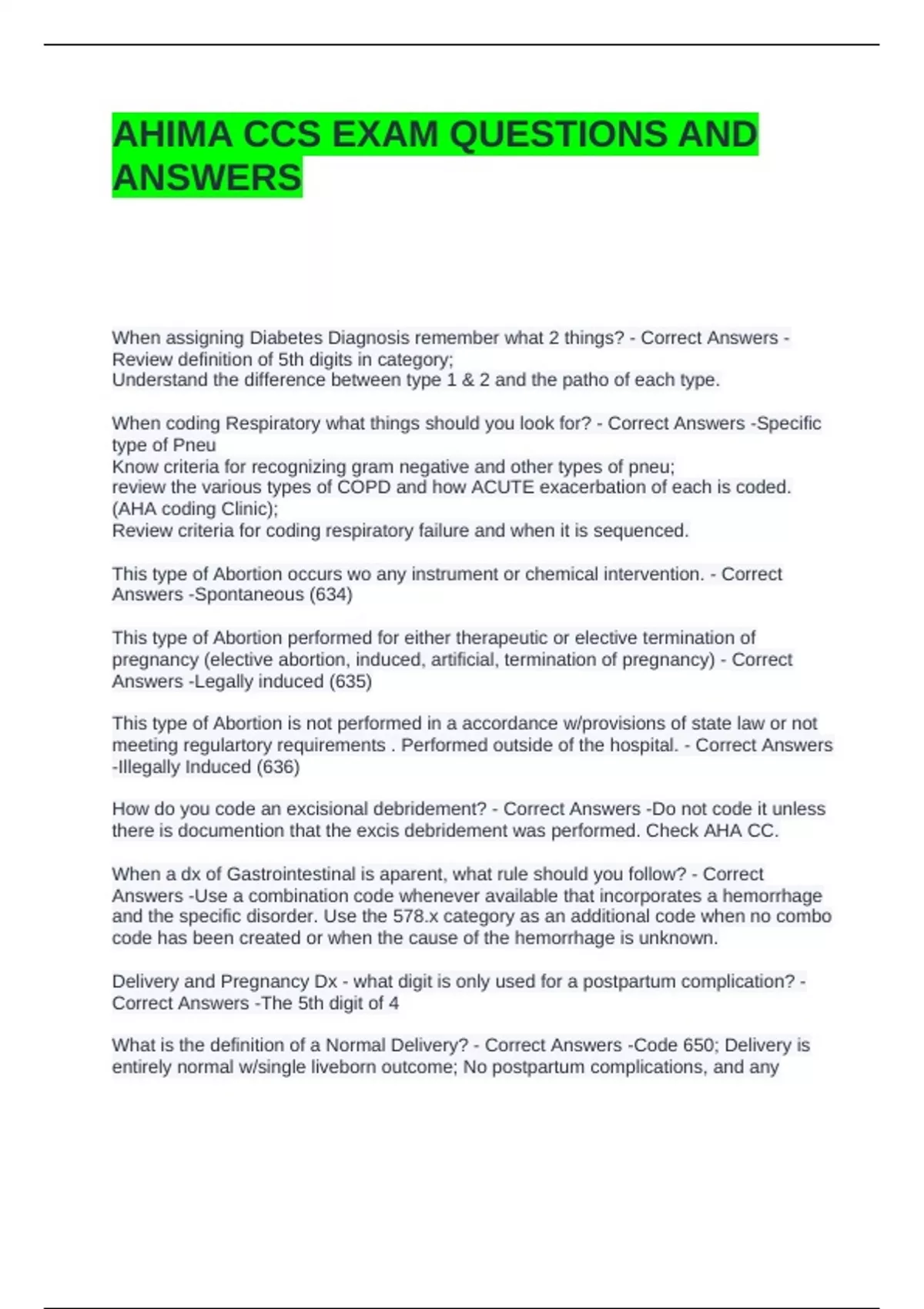 AHIMA CCS EXAM QUESTIONS AND