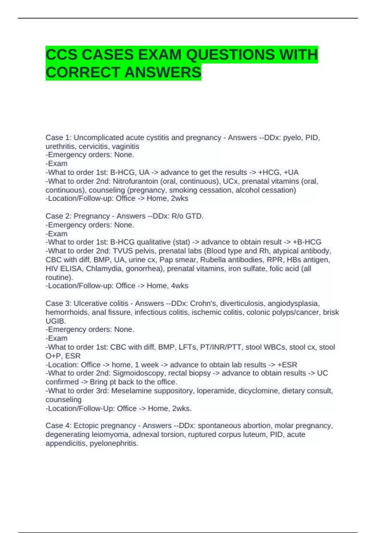CCS CASES EXAM QUESTIONS WITH