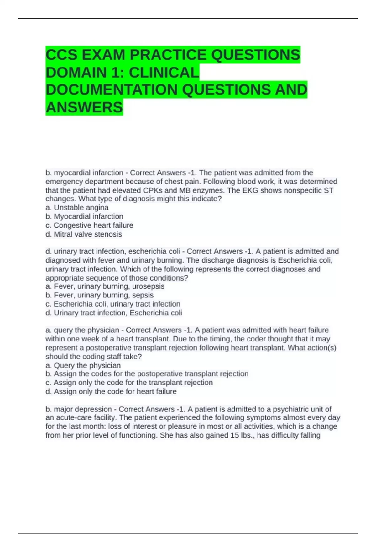 CCS EXAM PRACTICE QUESTIONS DOMAIN 1: CLINICAL DOCUMENTATION QUESTIONS AND ANSWERS