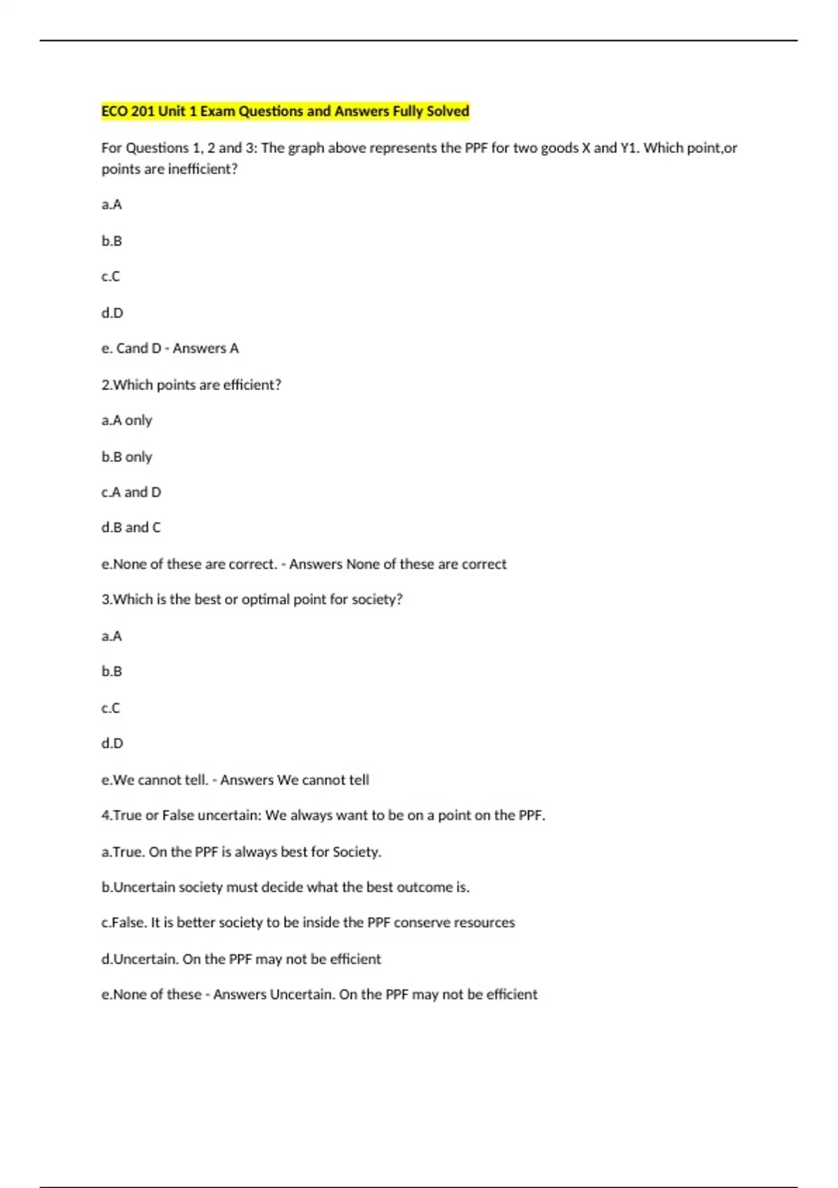 a.True. On the PPF is always best for Society.