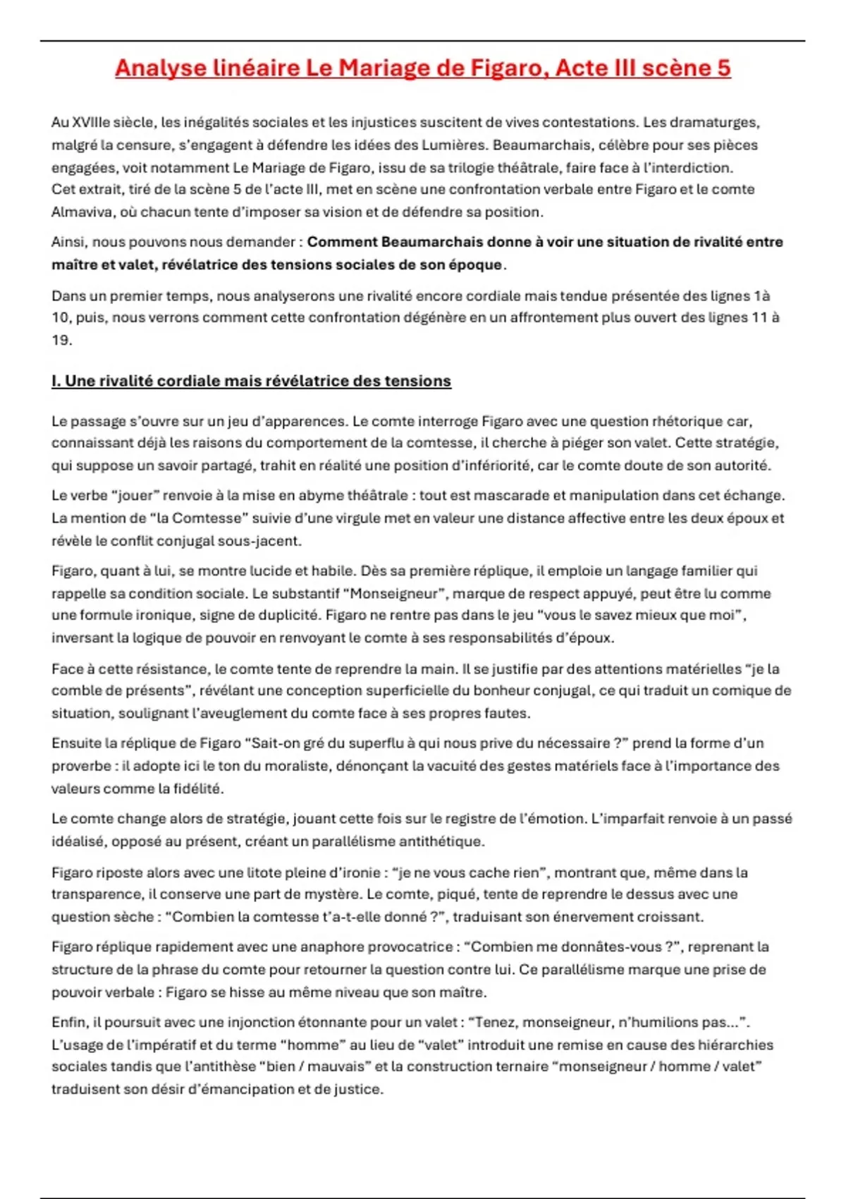 Ainsi, nous pouvons nous demander : Comment Beaumarchais donne à voir une situation de rivalité entre
