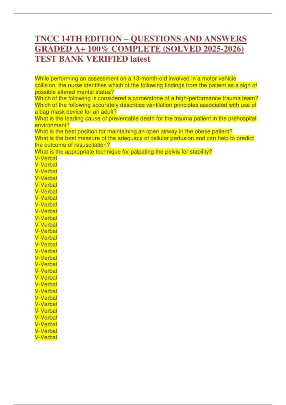 , TNCC 14TH EDITION – QUESTIONS AND ANSWERS
