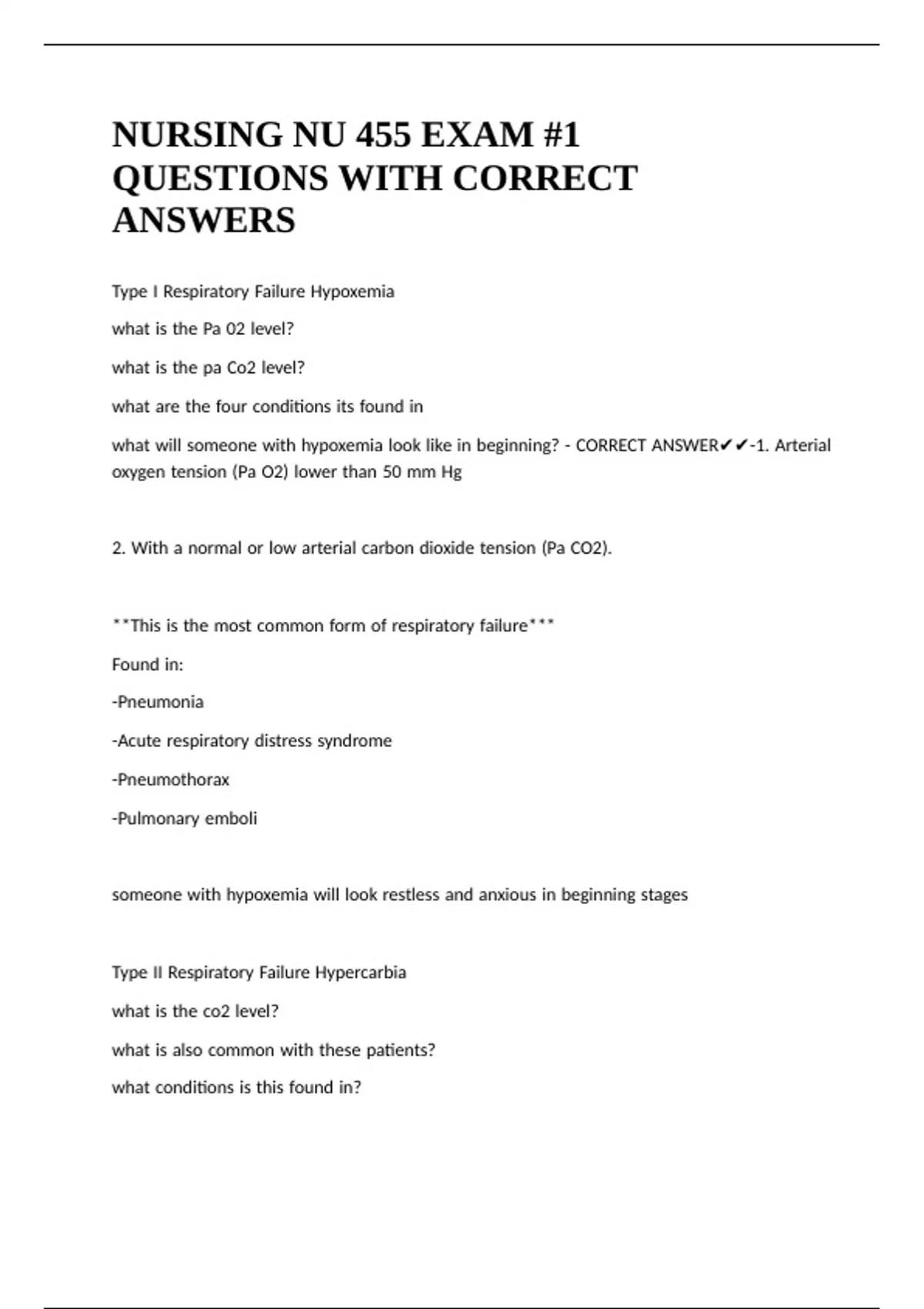 what |will |someone |with |hypoxemia |look |like |in |beginning? |- |CORRECT |ANSWER✔✔-1. |Arterial |