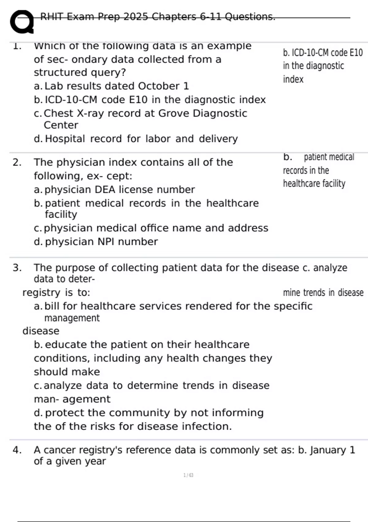 , RHIT Exam Prep 2025 Chapters 6-11 Questions.