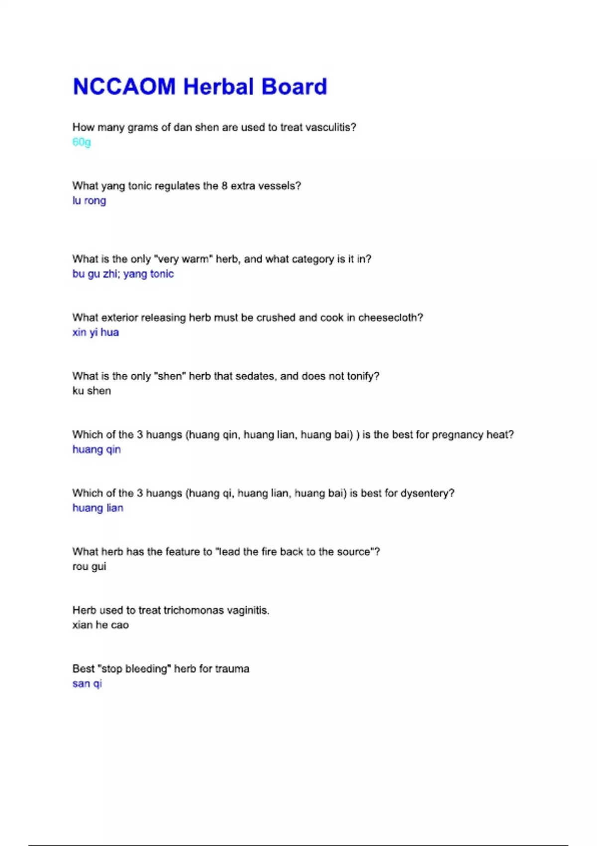NCCAOM Herbal Board - Exam Questions Complete Set Review With Correct Answers