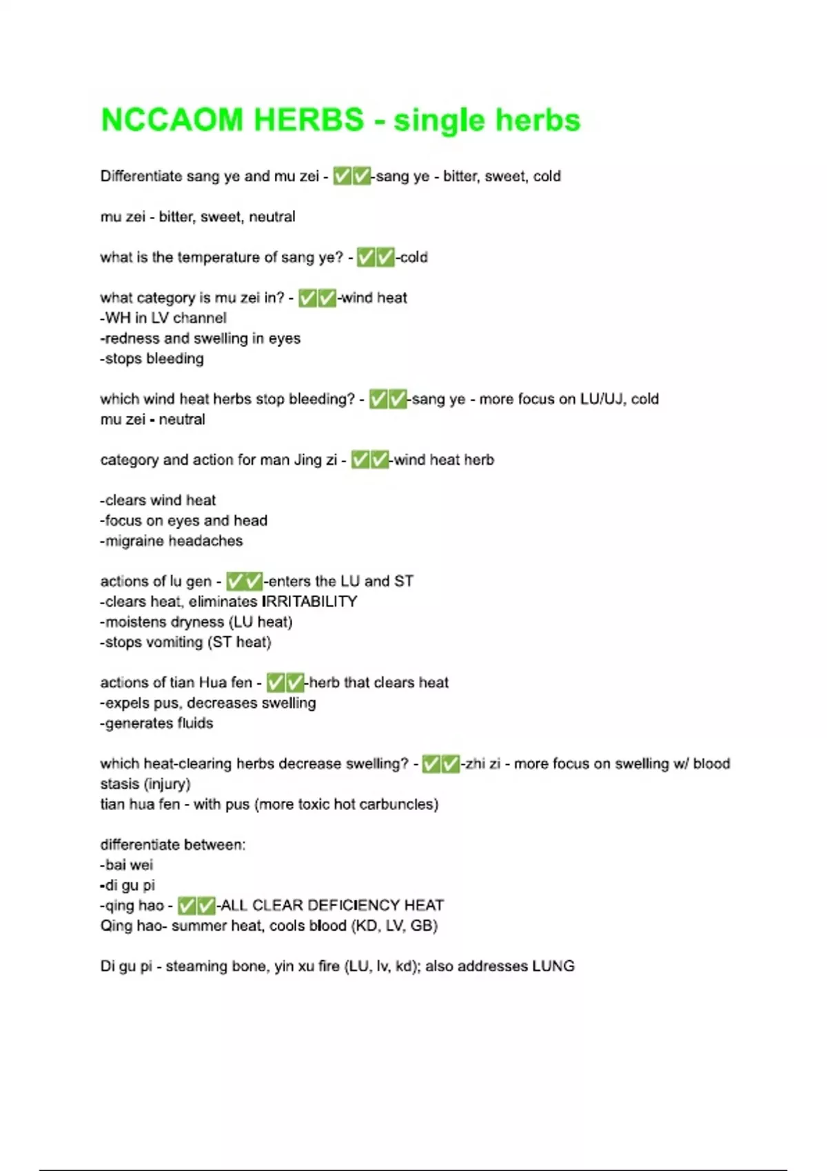 nccaom herbs single herbs questions complete set