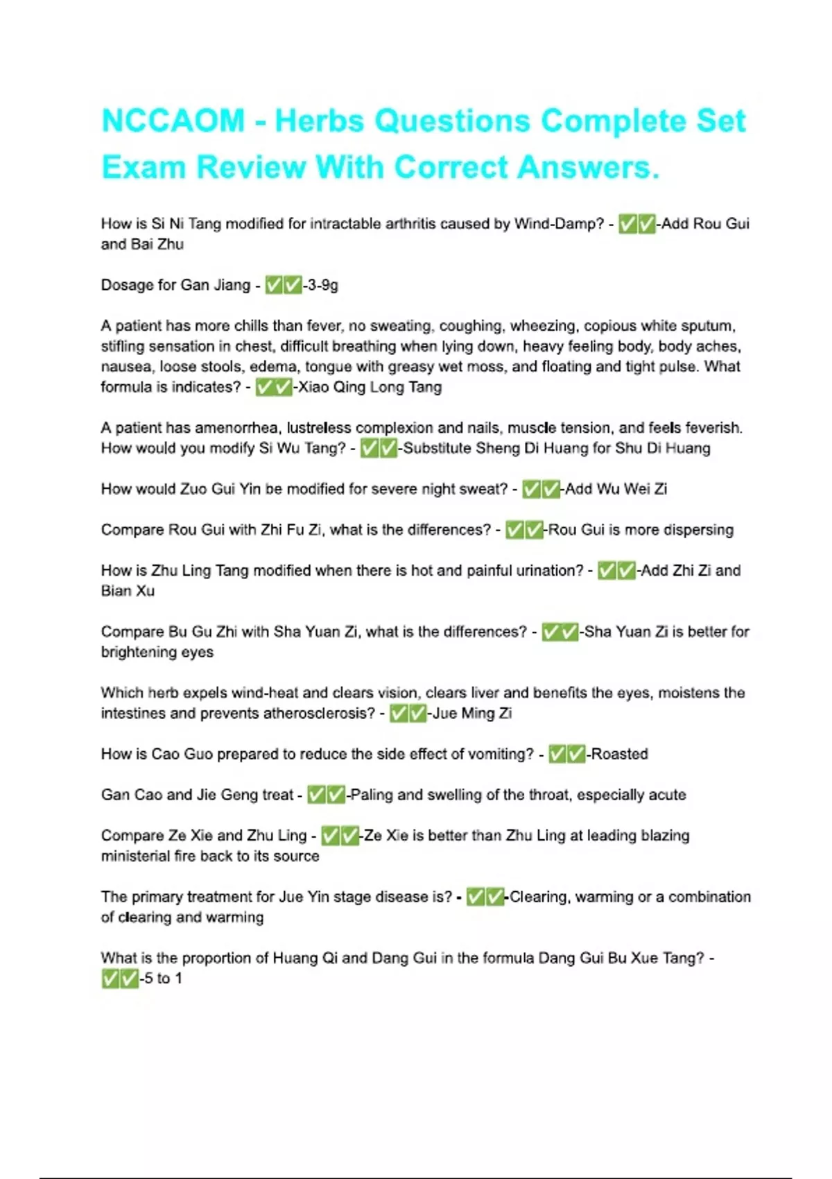 NCCAOM - Herbs Questions Complete Set Exam Review With Correct Answers