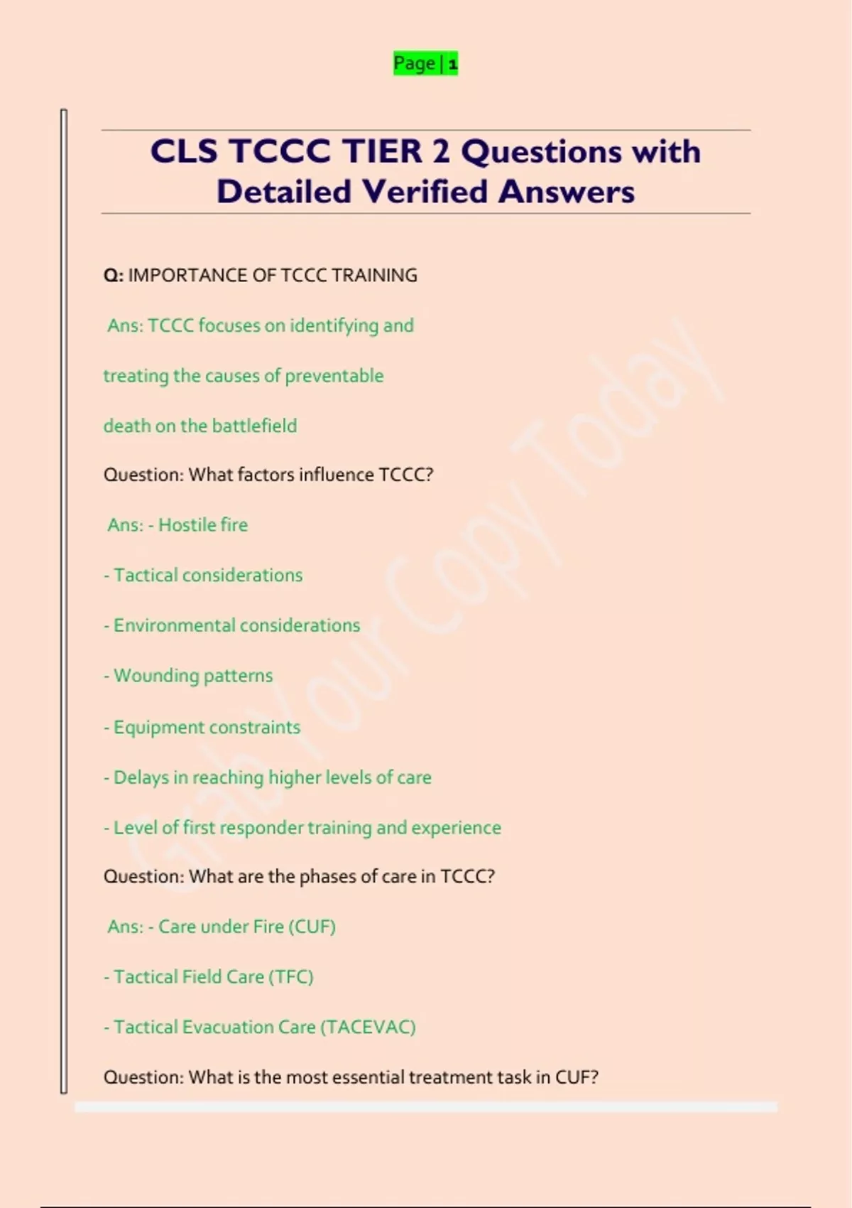 CLS TCCC TIER 2 Questions with