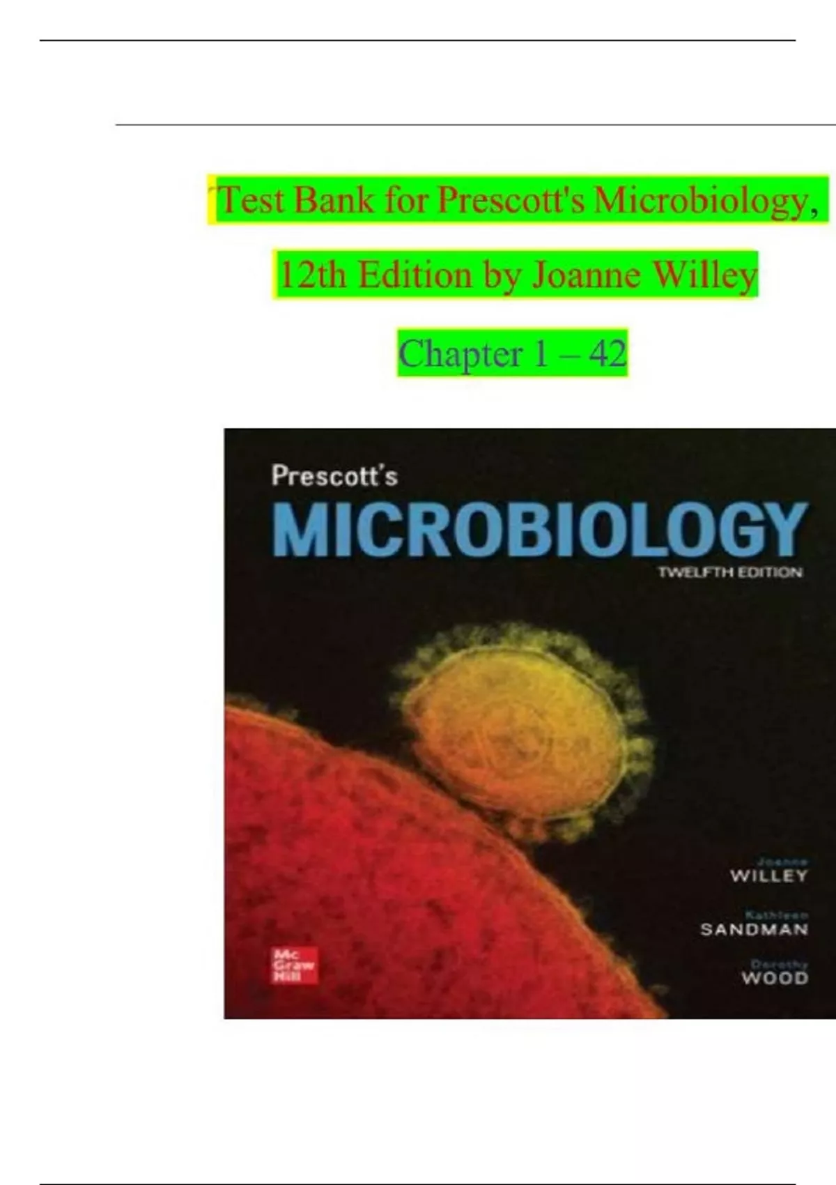 ,Test Bank for Prescott's Microbiology, 12th Edition by Joanne Willey Veri