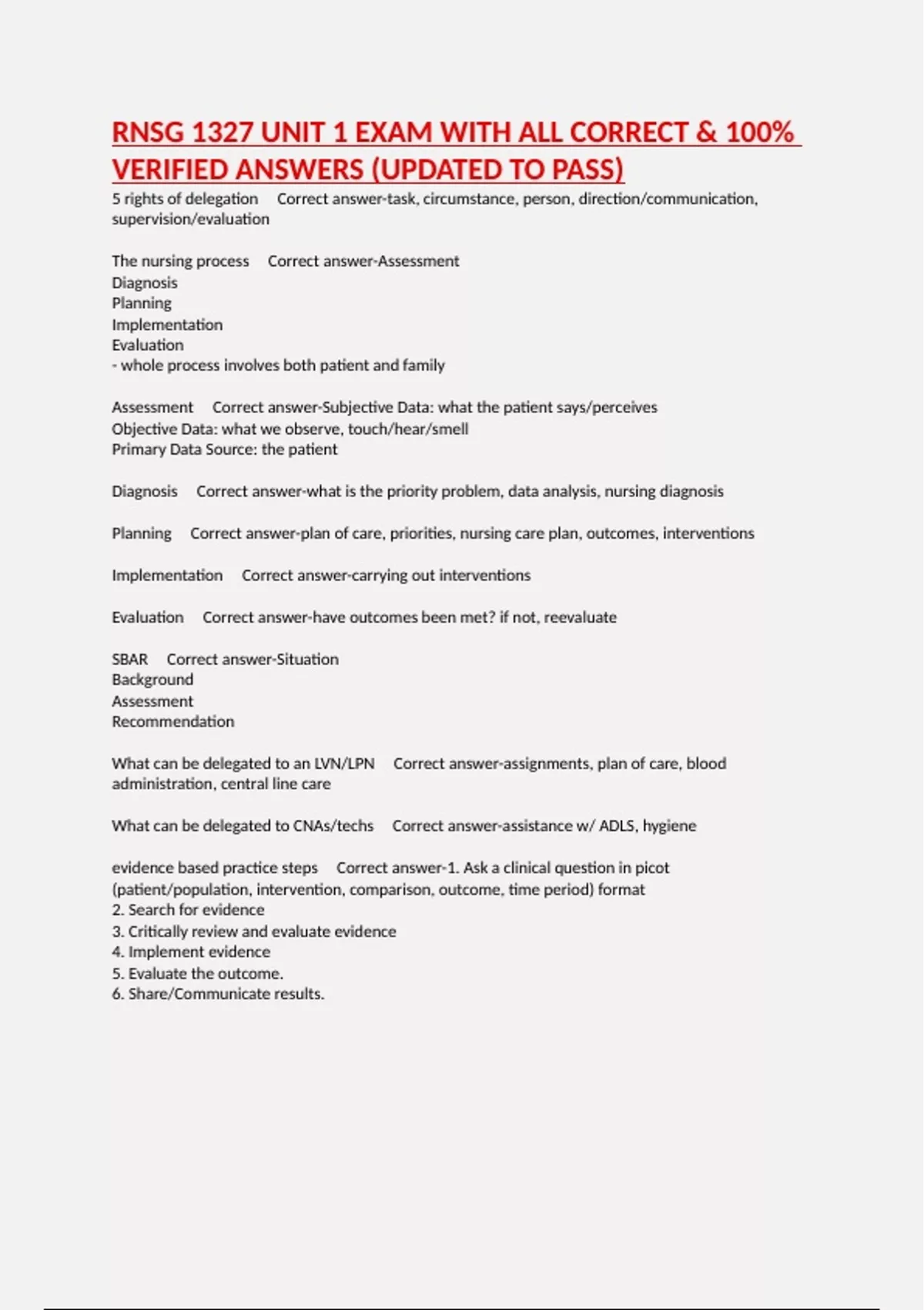 evidence based practice steps Correct answer-1. Ask a clinical question in picot