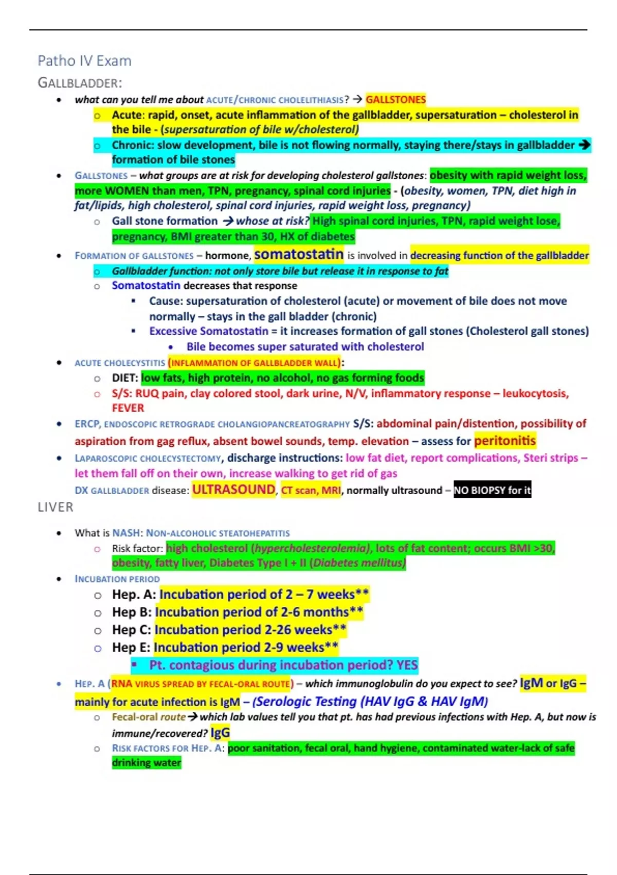 o S/S: RUQ pain, clay colored stool, dark urine, N/V, inflammatory response – leukocytosis,