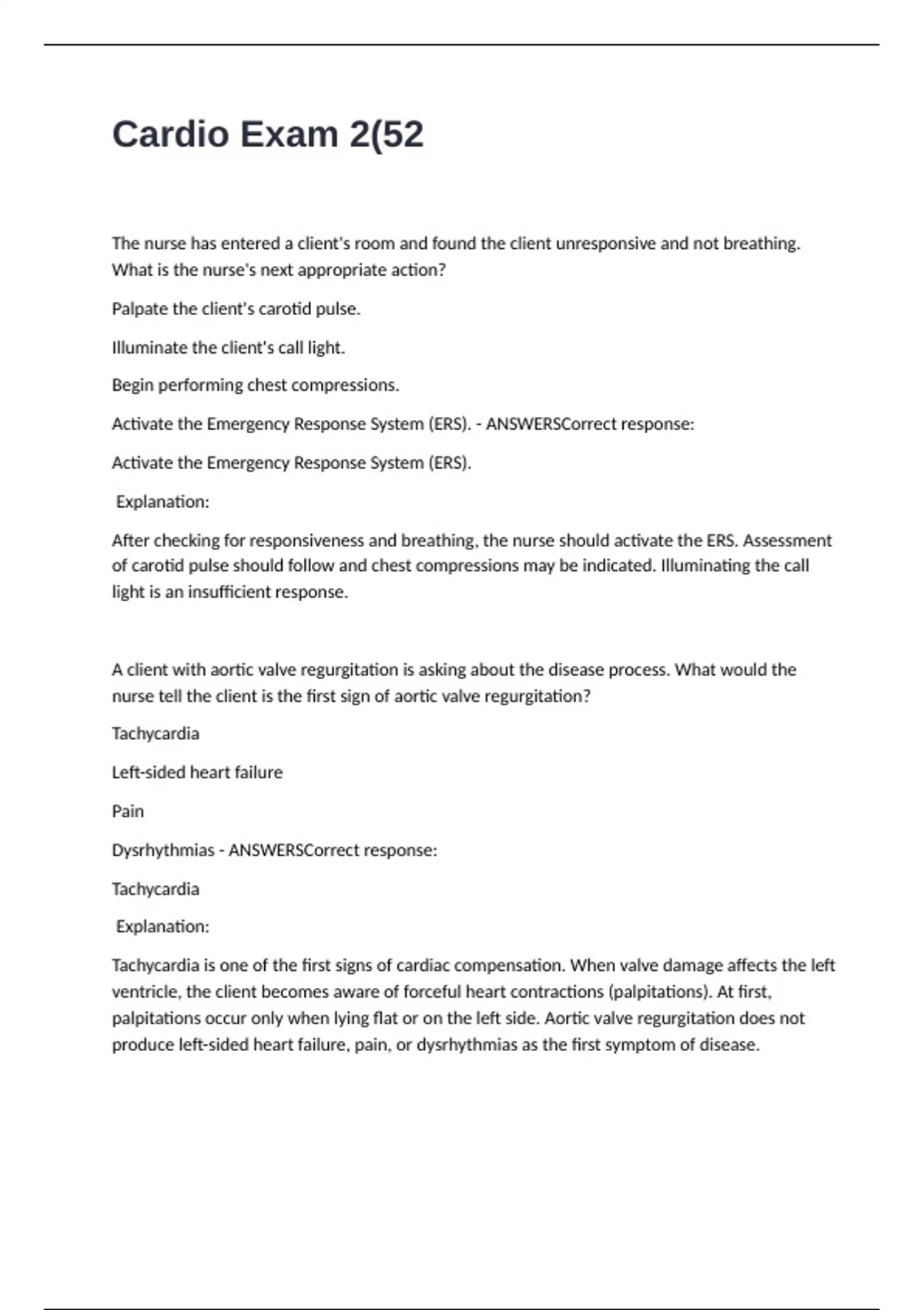 Cardio Exam 2 Questions and Answers 100% CORRECT