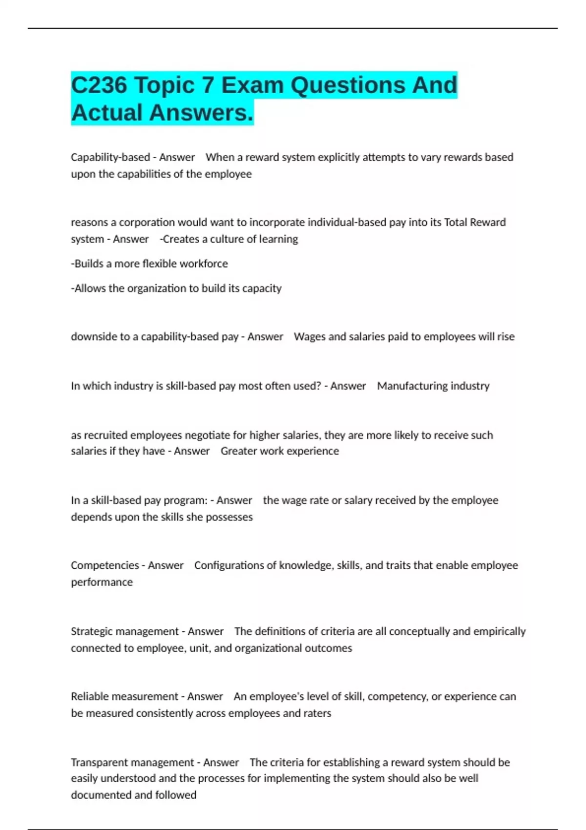C236 Topic 7 Exam Questions And Actual Answers.