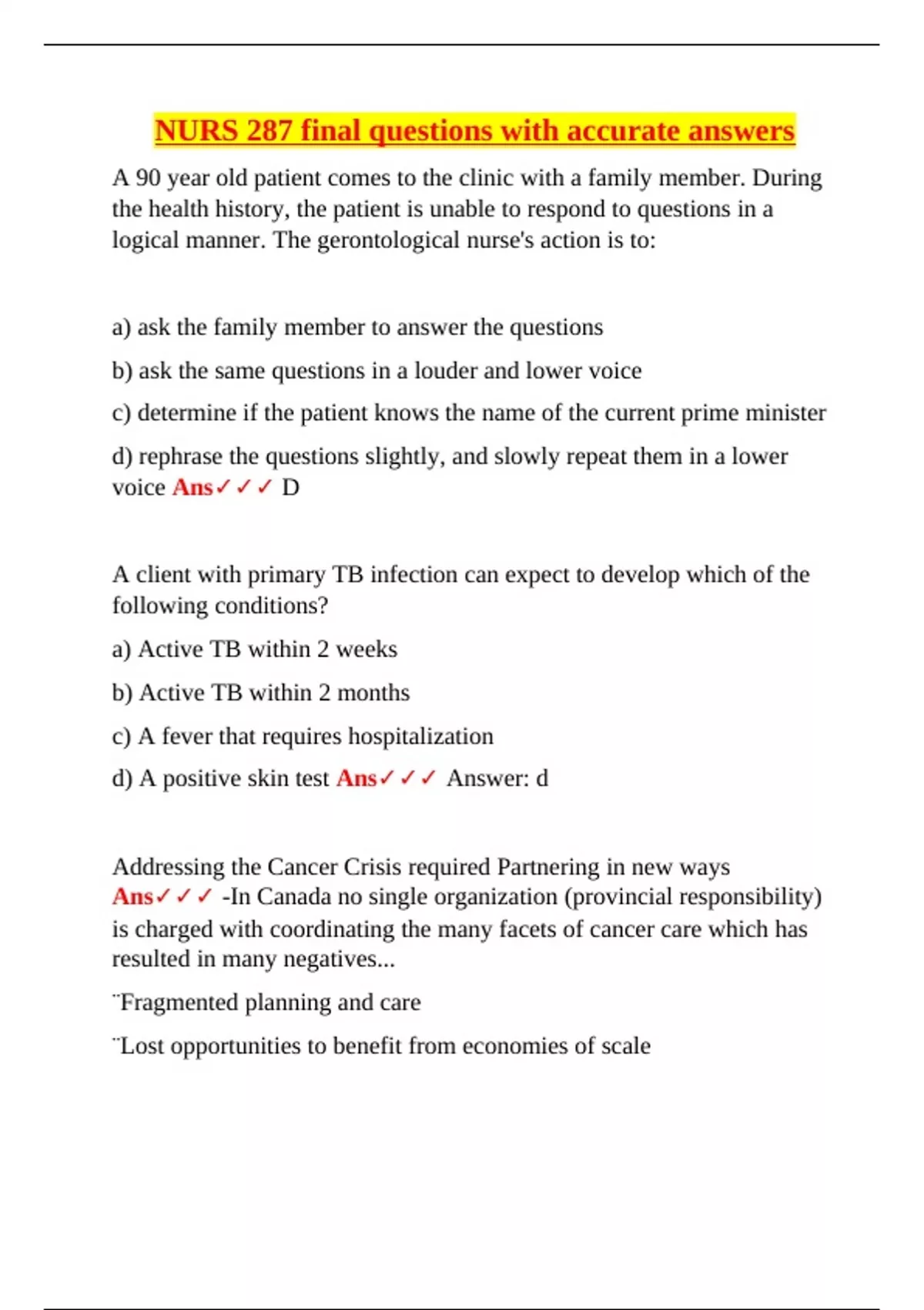 NURS 287 final questions with accurate answer3.