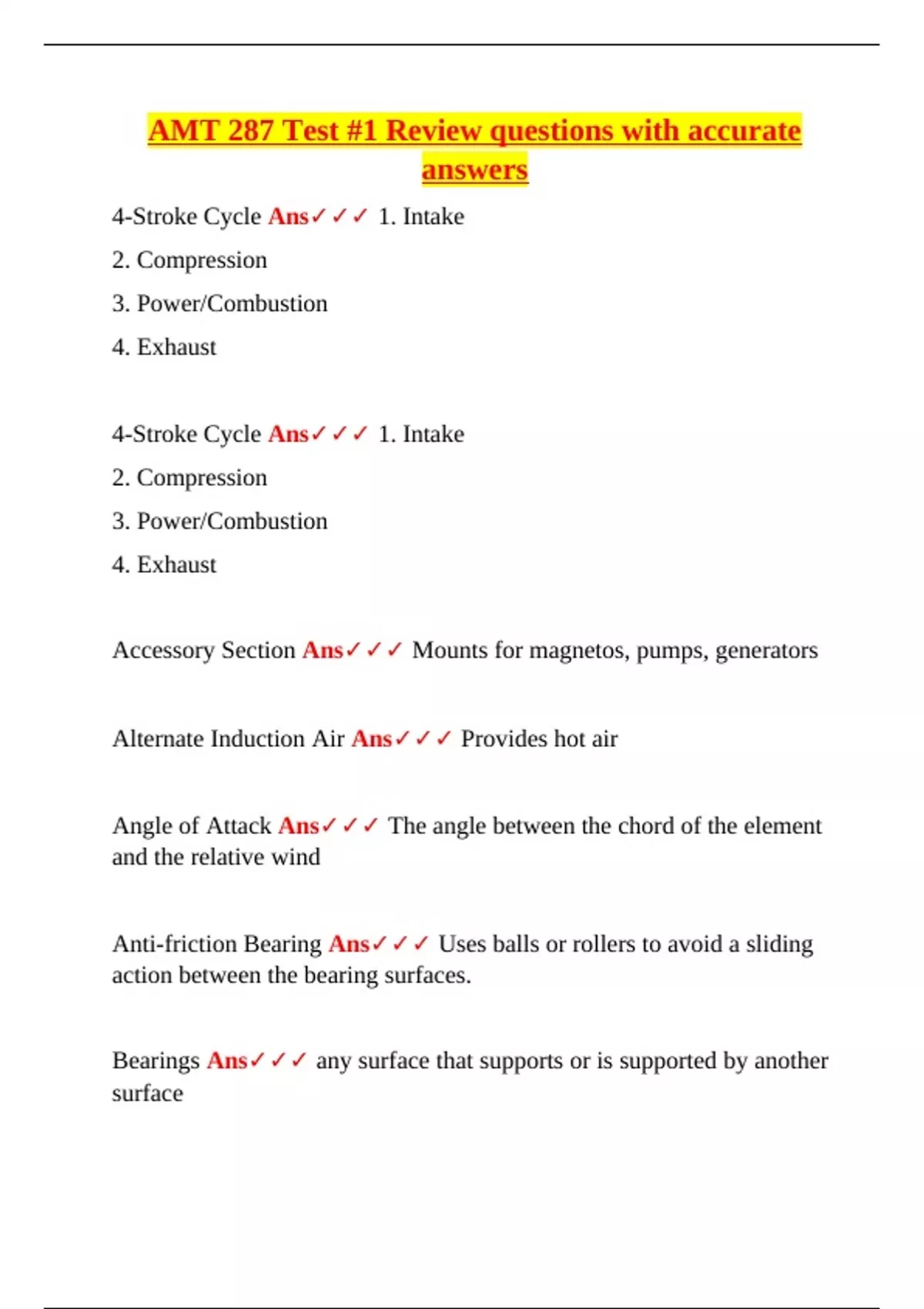 4-Stroke Cycle Ans✓✓✓ 1. Intake
