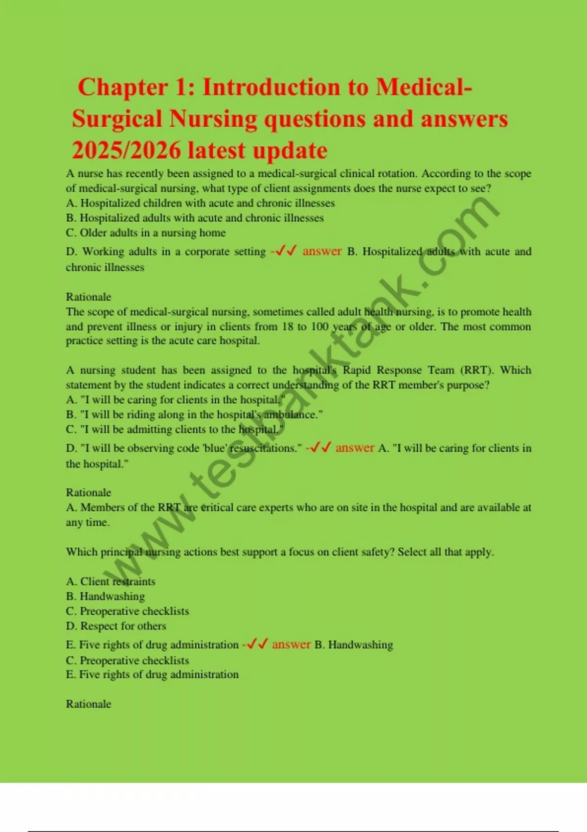 of medical-surgical nursing, what type of client assignments does the nurse expect to see?