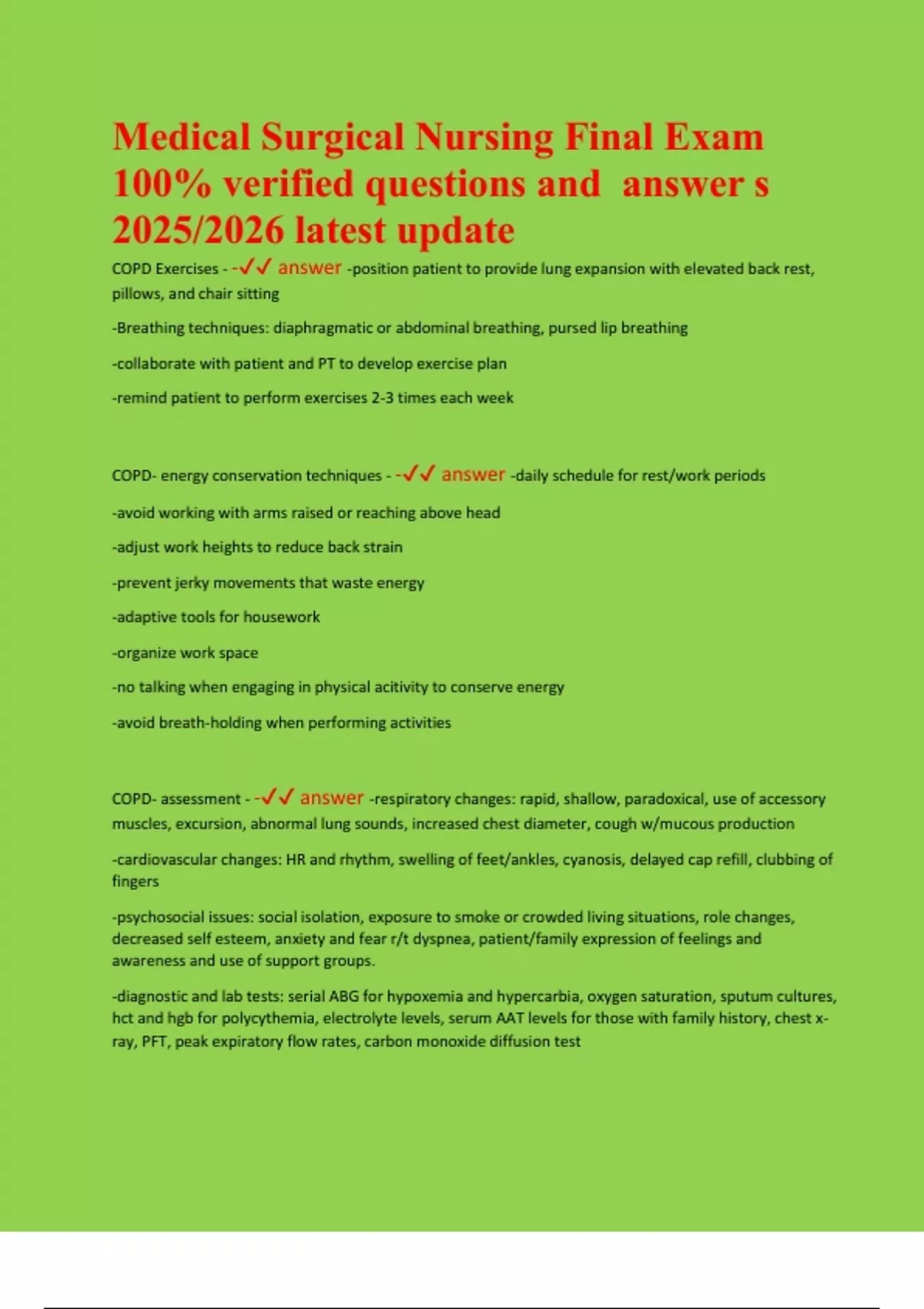 COPD Exercises - -✔✔ answer -position patient to provide lung expansion with elevated back rest,