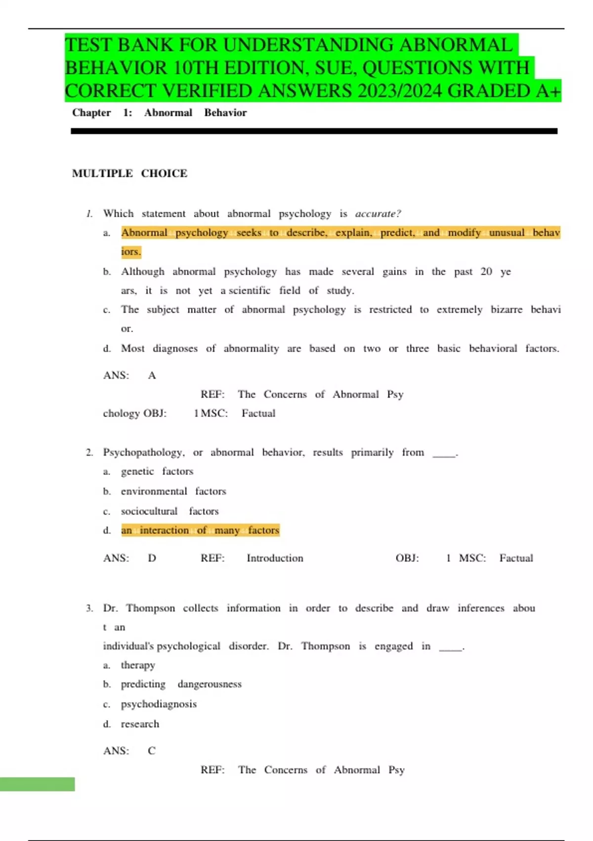 OBJ:44The44Concerns44of44Abnormal44Psychology44MSC:4 4 Fact