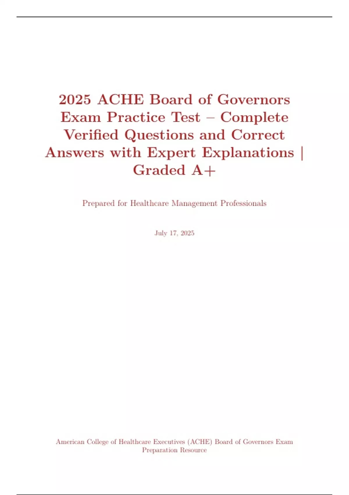 American College of Healthcare Executives (ACHE) Board of Governors Exam