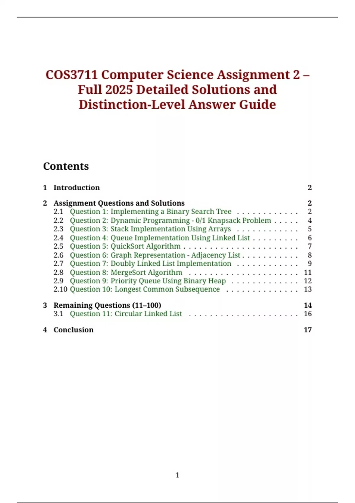puter Science Assignment 2 for the 2025 academic year. It includes 100 carefully