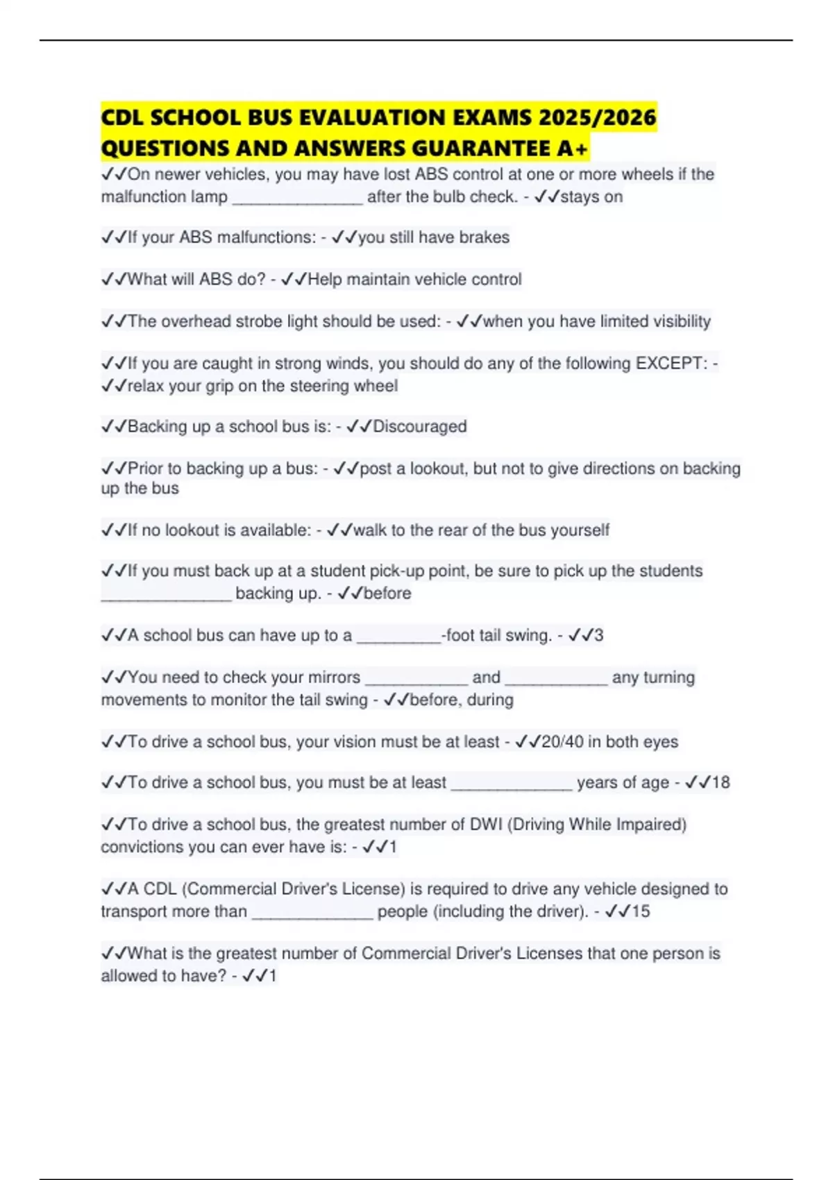 ✔✔To drive a school bus, you must be at least _____________ years of age - ✔✔18