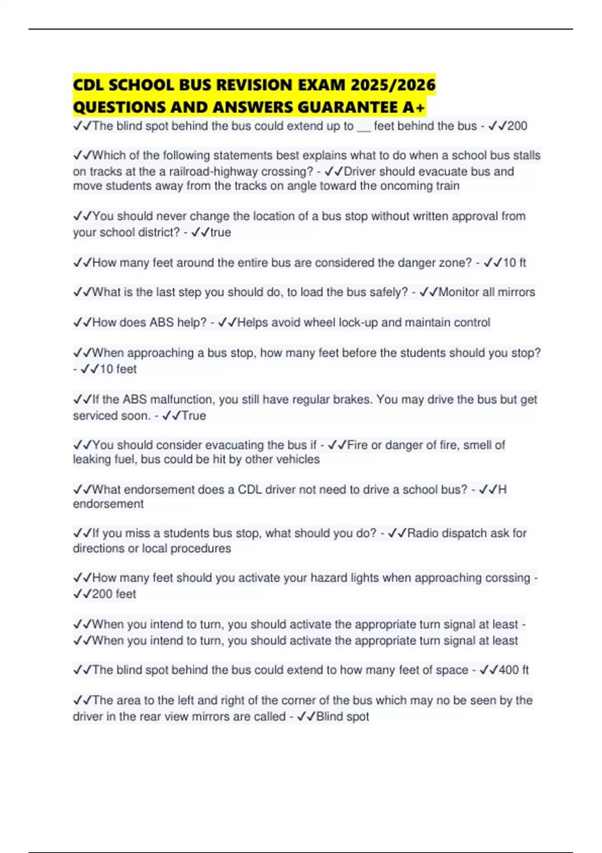 ✔✔What endorsement does a CDL driver not need to drive a school bus? - ✔✔H