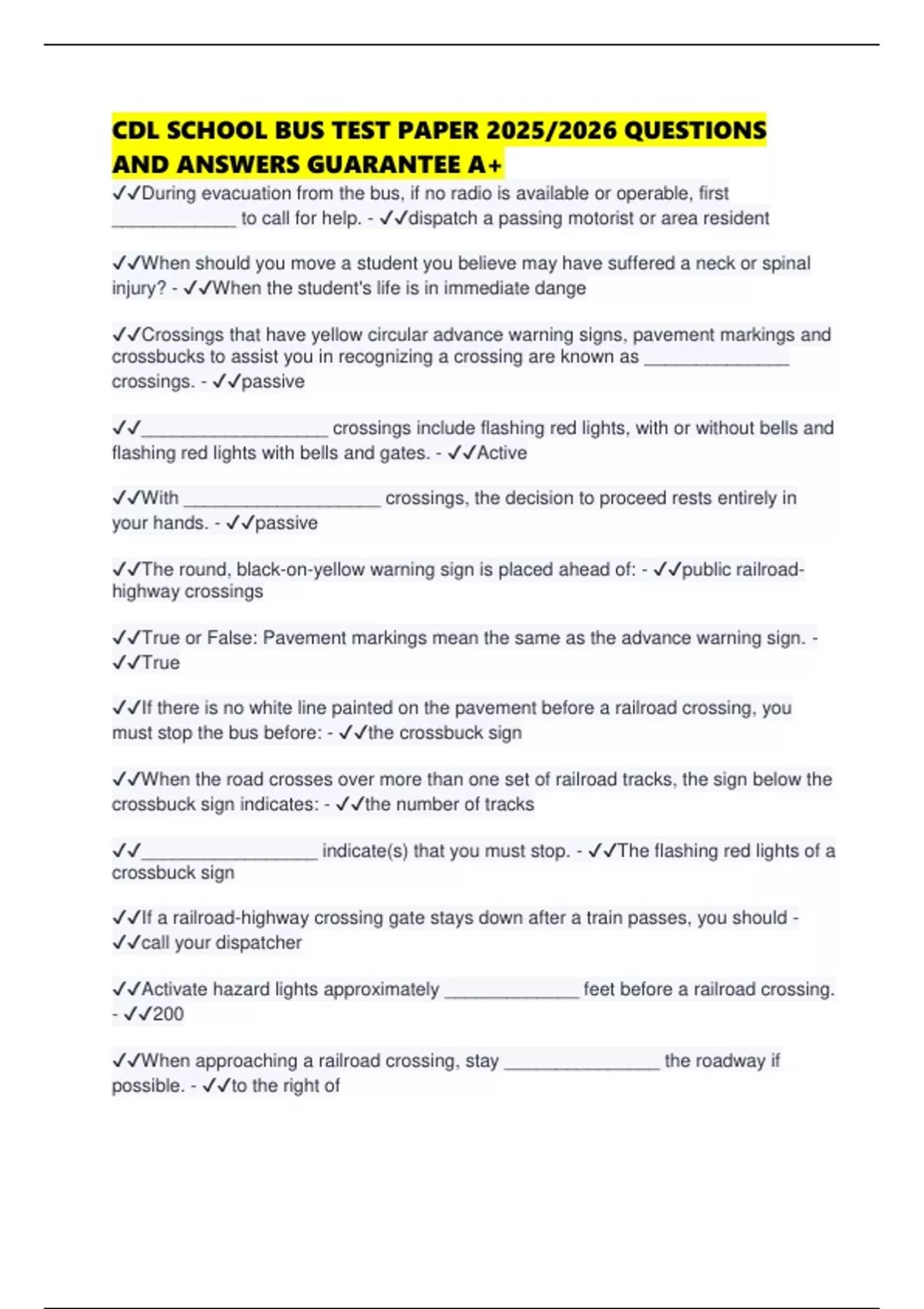 AND ANSWERS GUARANTEE A+