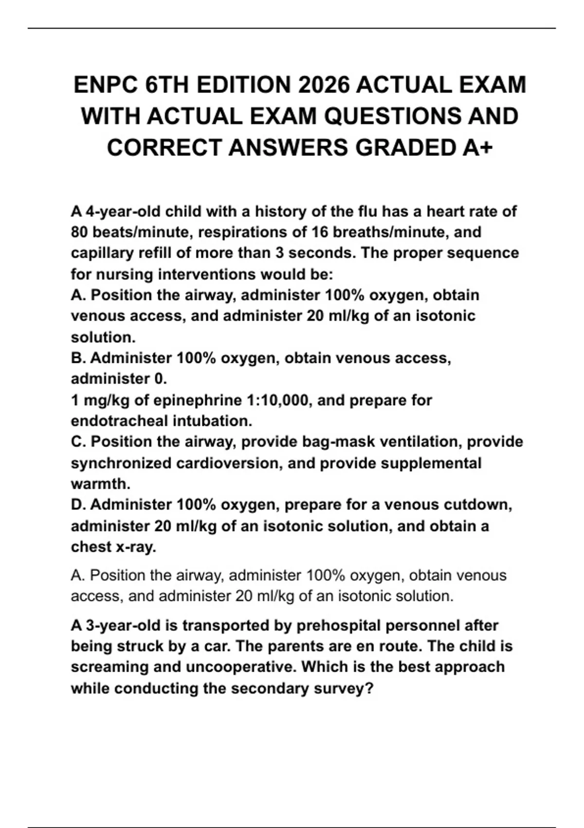venous access, and administer 20 ml/kg of an isotonic