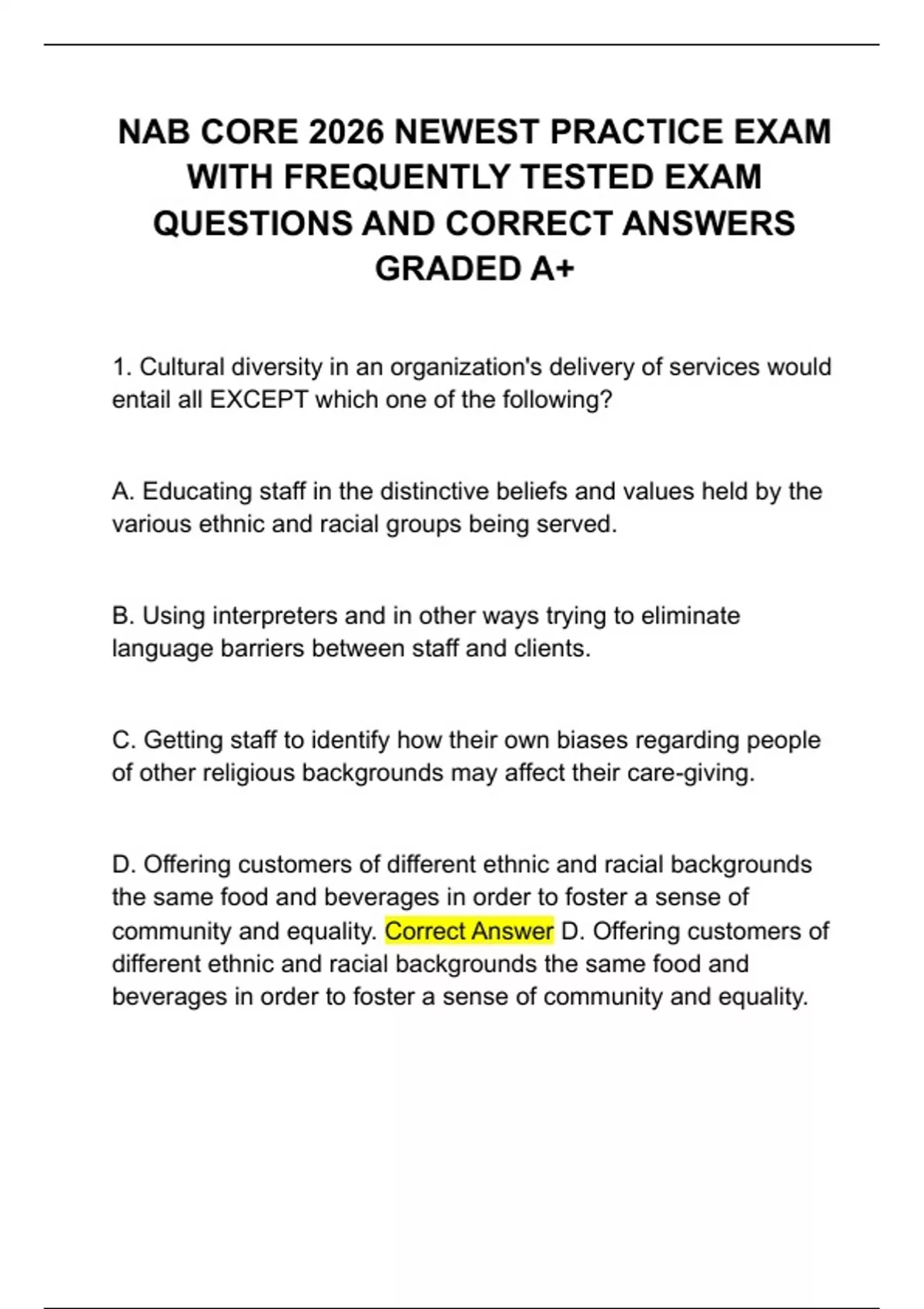 NAB CORE 2026 NEWEST PRACTICE EXAM WITH FREQUENTLY TESTED EXAM QUESTIONS AND CORRECT ANSWERS GRADED A+